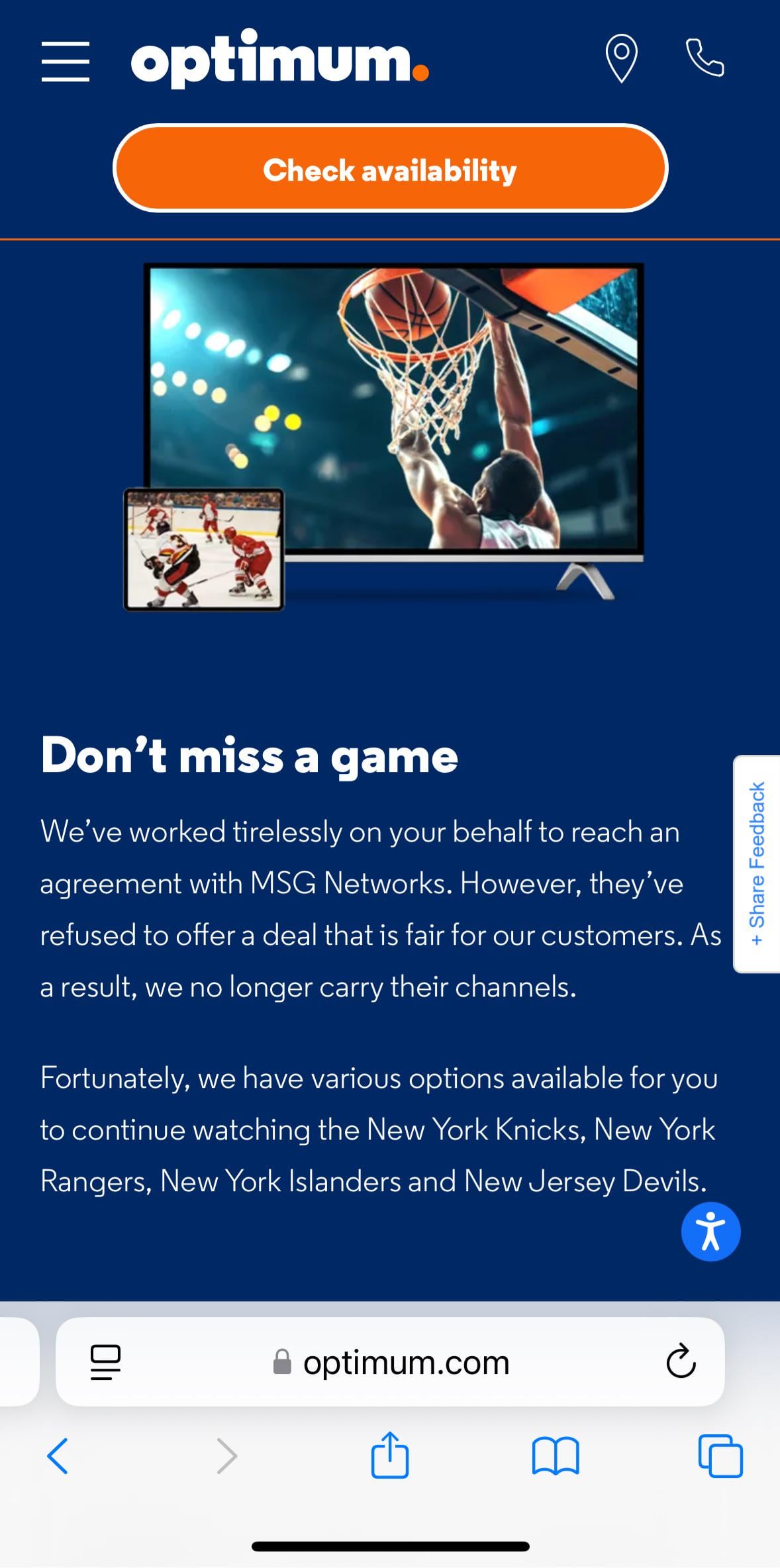 Well this is the final straw for me. I’m switching to fios until MSG fucks them too I guess. I fucking hate optimum anyway