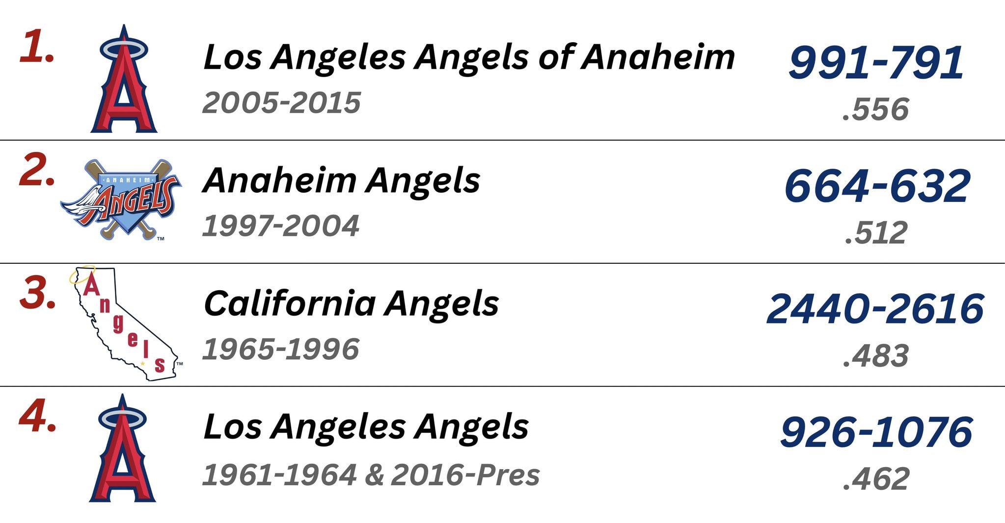 [Brooksgate] the Angels all-time record by what their team name was