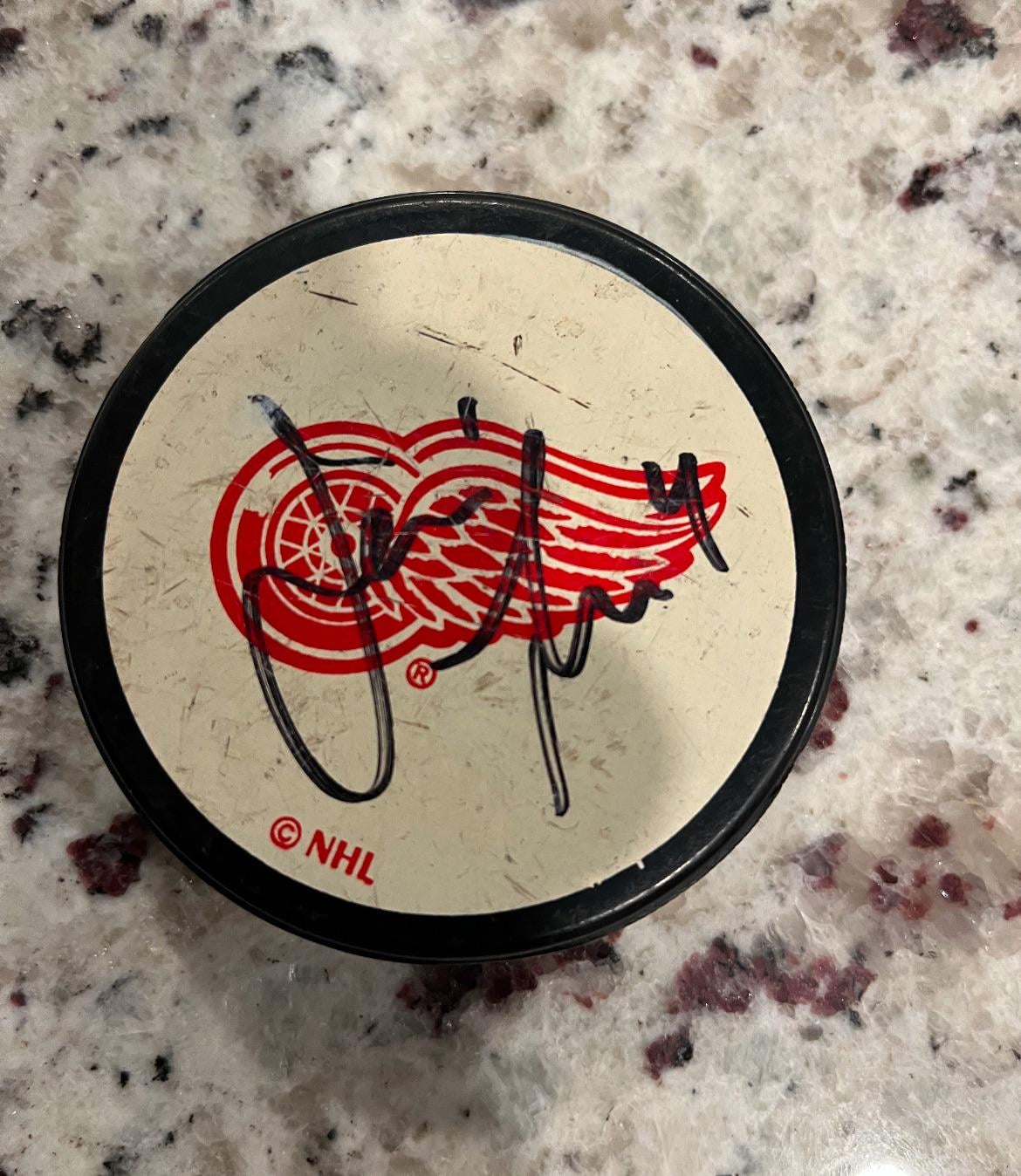 Unless that’s retired redwing HOF from 1947-1960 Red Kelly, I think your dad maybe played a fast one on you back in the day. It reminds me of the free hockey pucks you get from Little Caesars back in the day when they were giving away free Detroit vipers hockey game tickets.