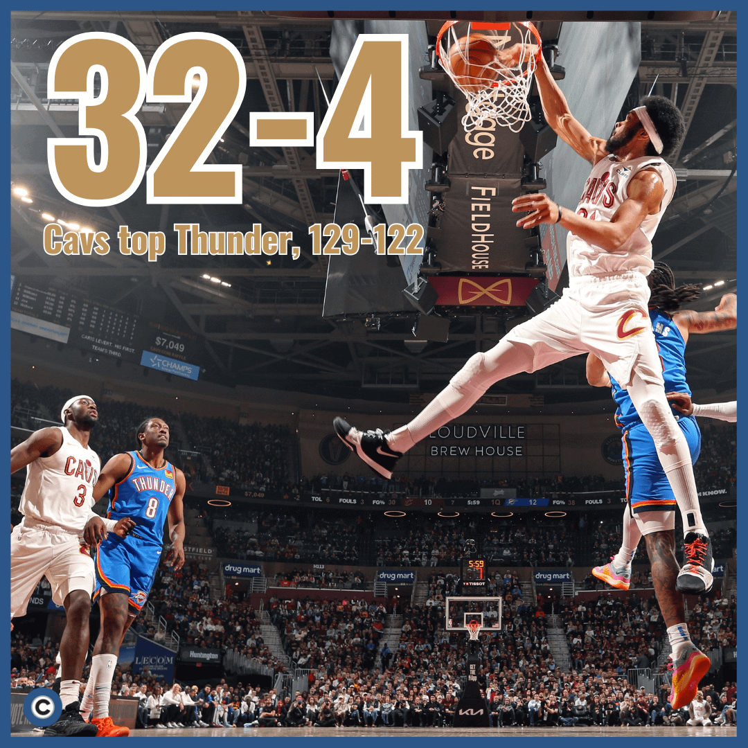 Best>West – Cavs move to an NBA-best 32-4 with 129-122 win over the Thunder