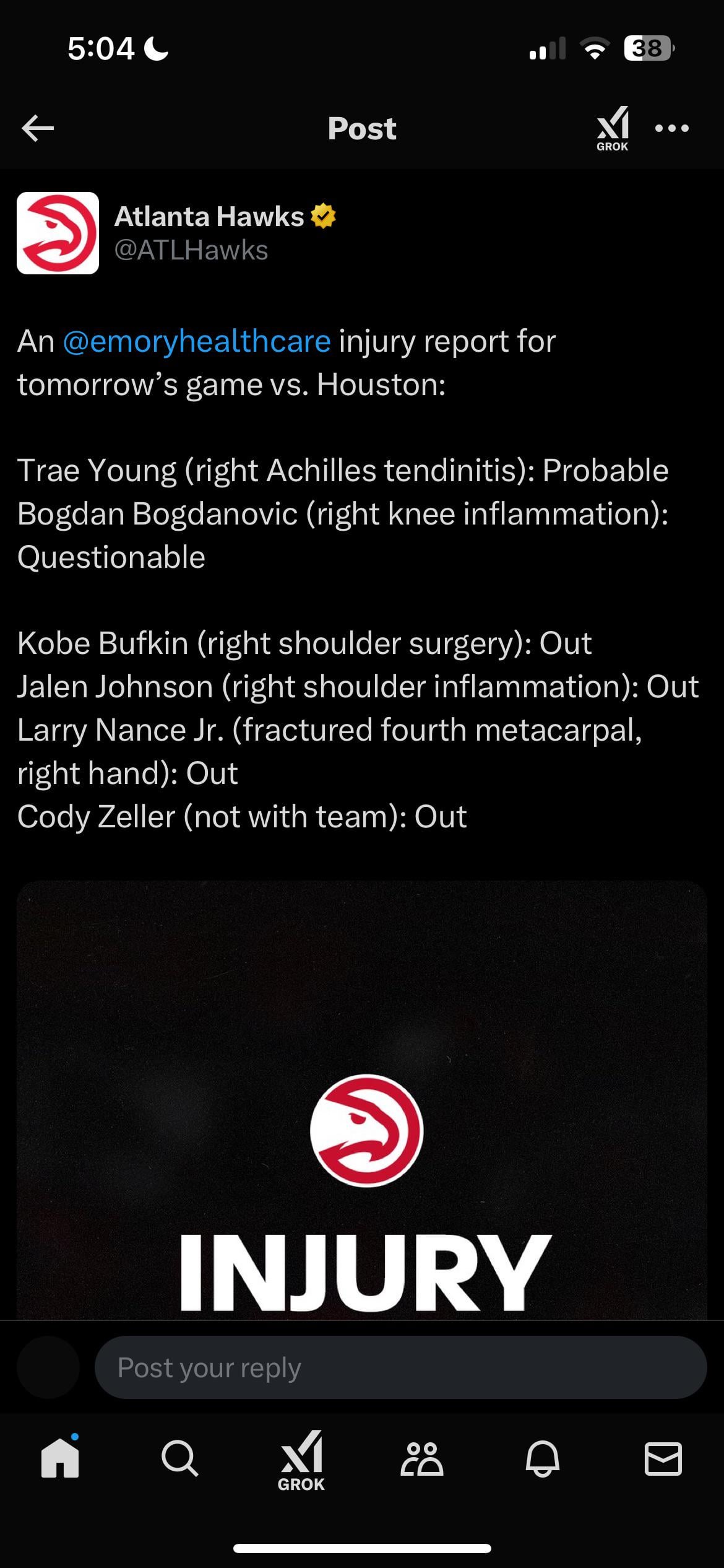It’s sad that our smallest player is our iron man. People love to bash Trae but dude is available every single night, injury or not.