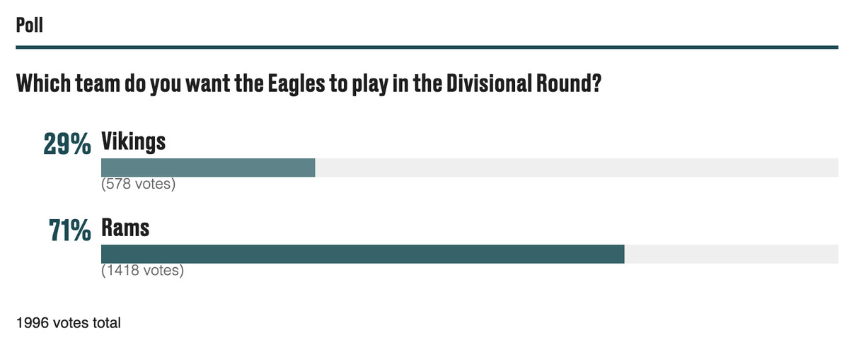 With the Los Angeles Rams blowing out the Minnesota Vikings on Monday night, it’ll be the Rams heading to Philly for a January 19 game that kicks off at 3:00 PM Eastern.