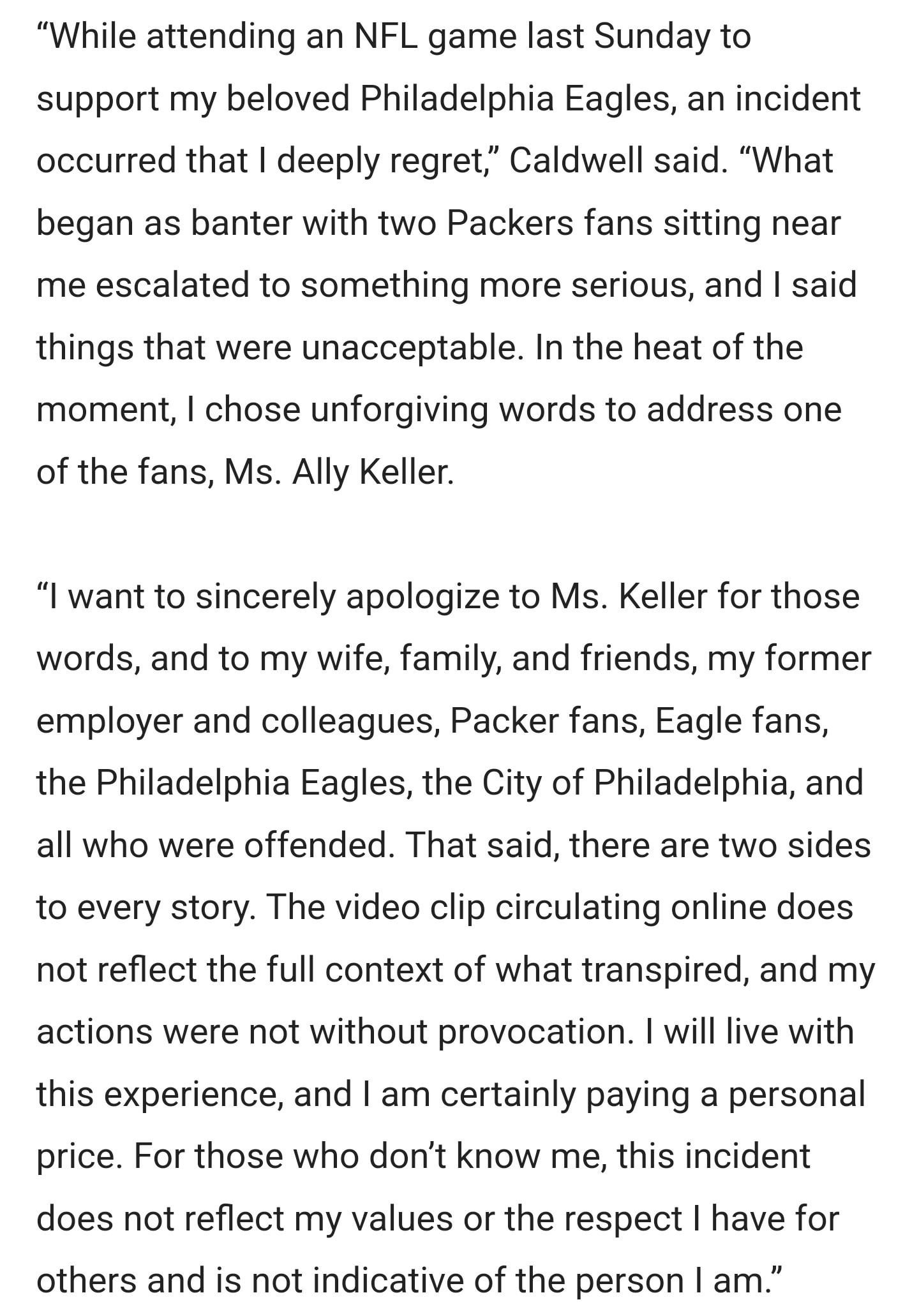 Why say the video doesn’t reflect the full context and then proceed to not give any fuckin additional context. My guess is if anything else did transpire it probably makes him look worse. You dont pull out your phone and record someone at a game like this unless they have already gone over the top. What a weak apology