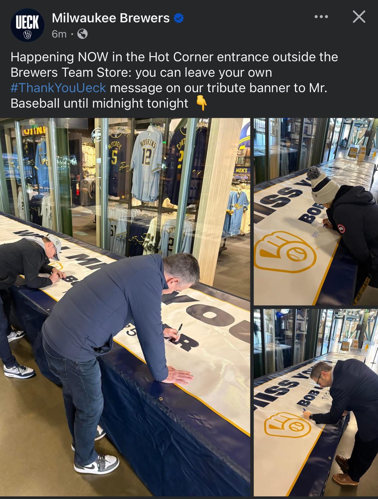 Tribute Banner @ Brewers Team Store 6 comments If someone goes, write in u/shadedmoonlight for her Gosh, I wish they’d also keep it out tomorrow. I would love to make it to Milwaukee today to sign but that’s just not feasible with work. You think they going to hang up the banner somewhere Wish I could go but I can’t make that 6 hour drive tonight https://preview.redd.it/487lij9b6ude1.jpeg?width=3024&format=pjpg&auto=webp&s=4da01149cfbc5dbb677b89525dc69fc9ebefc142 They are going to need a bigger banner…. Wish I’d know about that when I stopped. Leave a ReplyYou must be logged in to post a comment.
