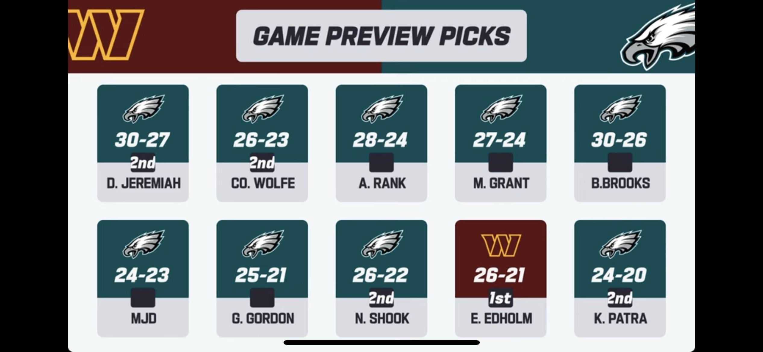I understand picking the Eagles, but if they win it will be by a large margin. Either commies win by one score or get blown out I don’t really see a middle ground.