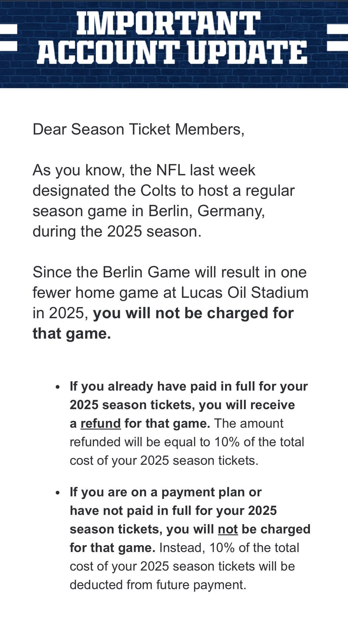 Since it was brought up thought I would share the is email I got today