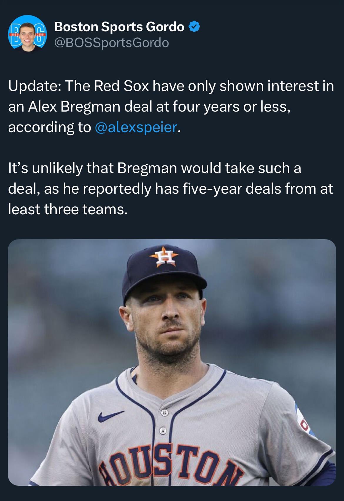 We can debate the wisdom of a five year deal for Bregman, but the Red Sox talked themselves into position where they have no excuse not to go there (or to get aggressive on the AAV for a 4 year deal).