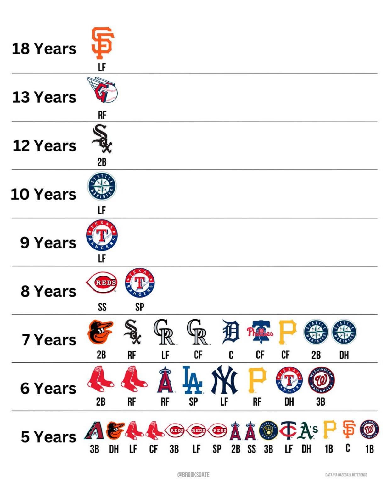 [BrooksGate] years in a row with a different Opening Day starter (active) – Of *course* ours is 3B 3 comments Would be ortiz again if he wasnt moving to SS. Cool chart though. This year we could repeat if Monasterio is the Opening day 3B. Not the most exciting thing. Can’t be Ortiz because he started at 2B on Opening Day That giants stat is crazy! Leave a ReplyYou must be logged in to post a comment.