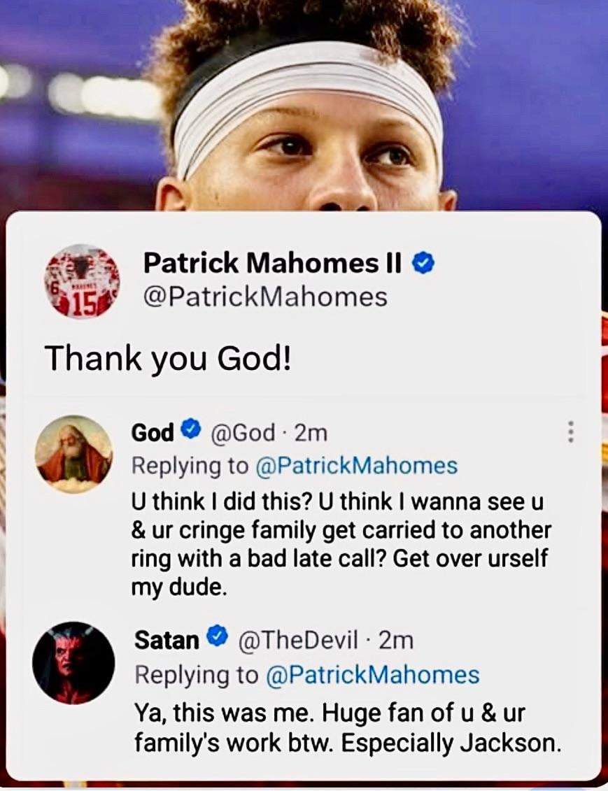 A Divine Response 6 comments **DEVIL MAGIC!** ^(*Perna Impression*) At least we get a little humor to cope 😂 Fun fact. Totally not the way the big dawg would speak. Another fun fact The Chiefs are GODs team, it’s the only explanation really. Quite literally one of the most punchable faces in sports. Wasn’t able to sleep last night. I rarely hear anyone praise God when they lose. Only the real ones do. huge fan of ur work lmao Leave a ReplyYou must be logged in to post a comment.