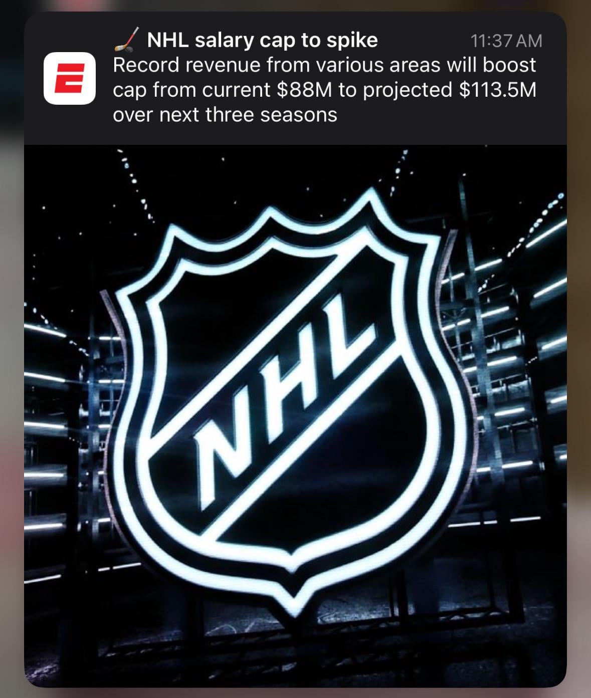 Perhaps the long term contracts for our vet core might be an advantage (I know, I’m reaching)? All those guys are locked in to their salaries. Whereas anyone getting a new contract under (much) higher salary caps will be asking for equally inflated salaries. So our “new” cap money could go to buying younger talent instead of raises to existing vets. Or yeah, Trotz will add to the retirement home 🤦🏼♂️
