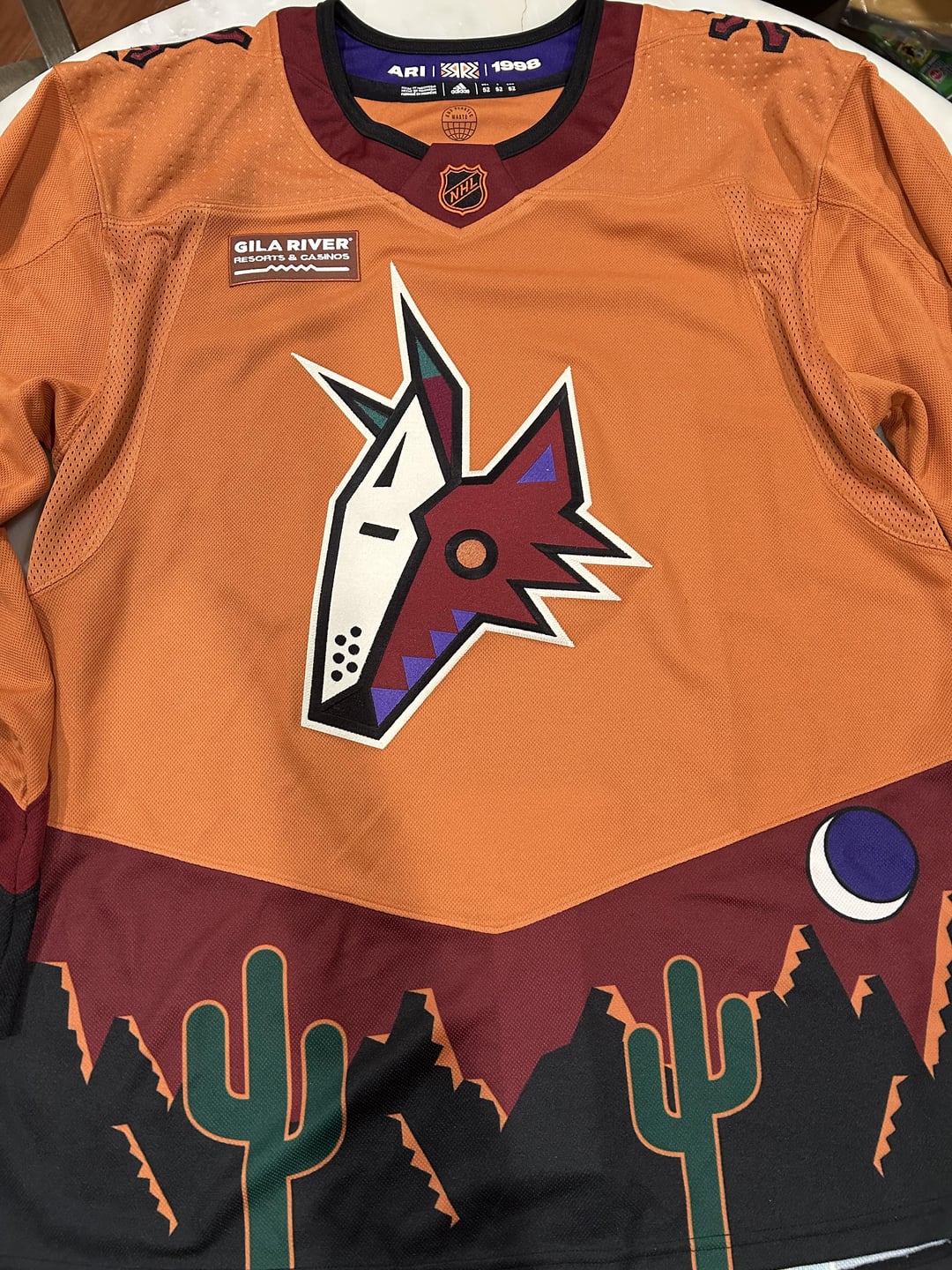 Got my hands on this BEAUTIFUL jersey, looks much better in person. I am a new fan of hockey and it sucks that the coyotes are no longer a team for me to root for. I have watched plenty of videos and have read into the teams history and I wish I could have gotten into the sport sooner to see the yotes play. Anyways can anyone please let me know about the sponsor patch? Is this jersey more rare than without?