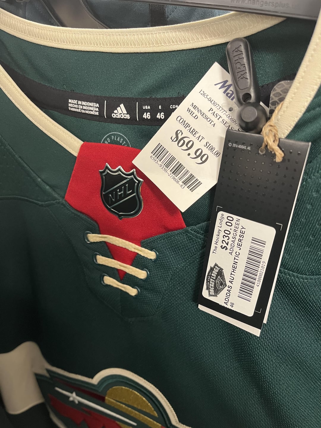 Sorry for another jersey post today, but wanted to share some specific info. At Marshall’s in Bloomington there are six authentic Adidas Primegreen home jerseys for sale for $69.99 in sizes 44 and 46. It’s more than twice that price on HockeyLodge.com, so pretty good deal! Also, these aren’t the garbage Fanatics brand jerseys so they probably won’t fall apart after two weeks! 😂
