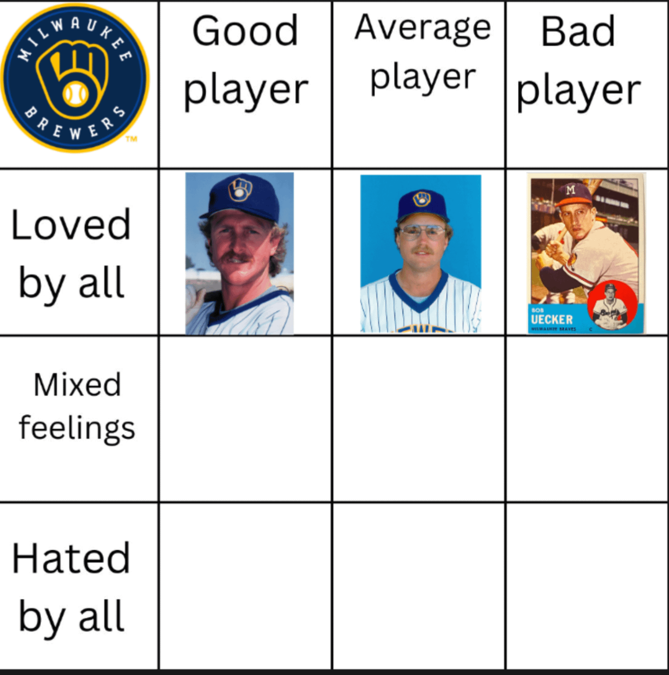I had this made 30 minutes after posting, we knew bad player loved by everyone would be Uecker. Now today who was a good player but fans have mixed feelings towards?