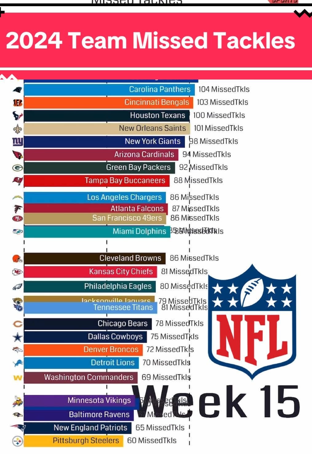 Probably have the most tackles made too. Would rather see missed tackles per play. Having the most anything doesn’t really matter when you’re on the field 50% longer than every other team.