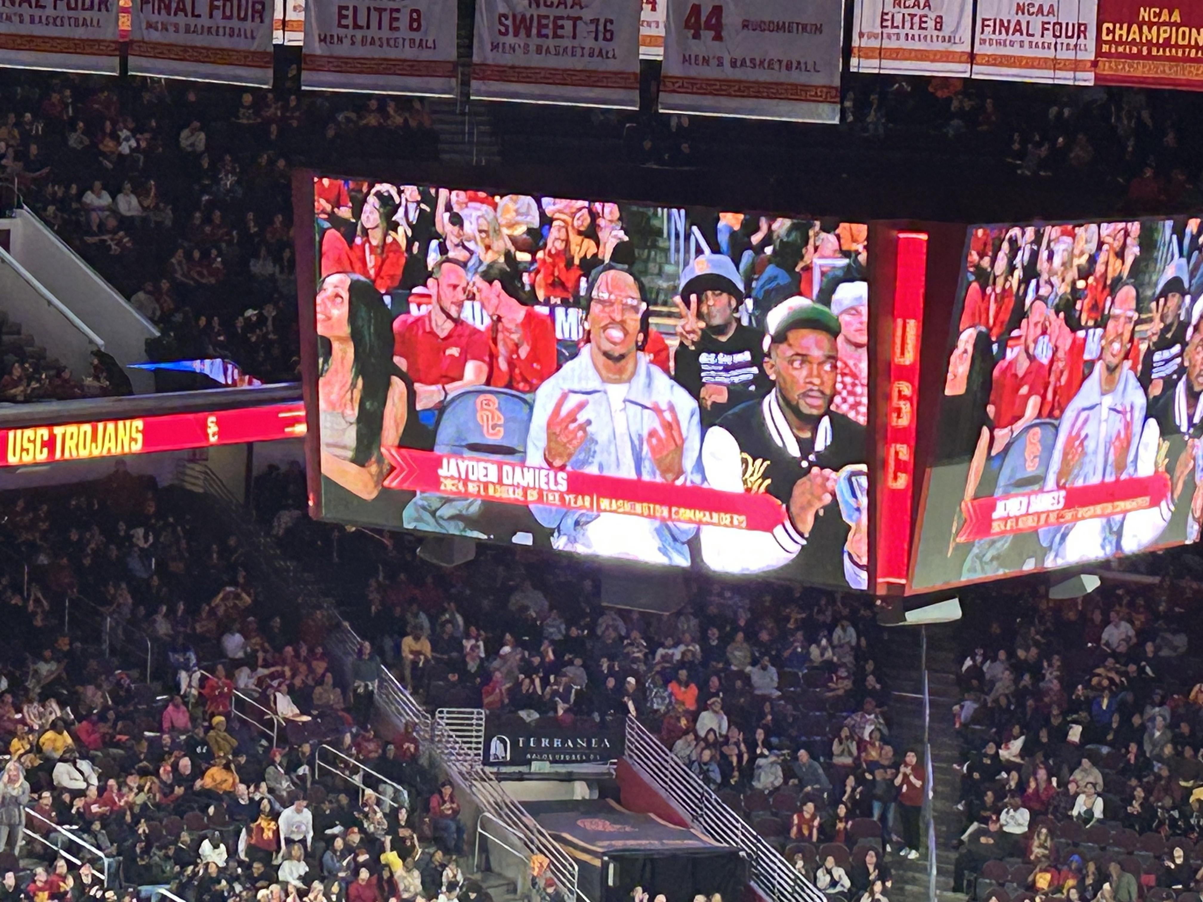 Jayden Daniels at the USC-UCLA women’s basketball game