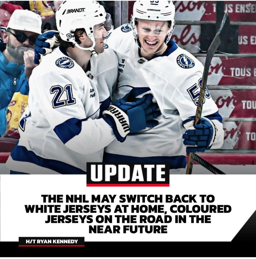 It’s not as cut and dry as the post makes it. It would be similar to the NFL, in that both teams can choose the jerseys they are wearing per week. So under the new cba, it would allow teams to wear two home jerseys if the nhl agrees to it. For example the sharks and devils would be able to play a home game in red and the sharks in blue/black.