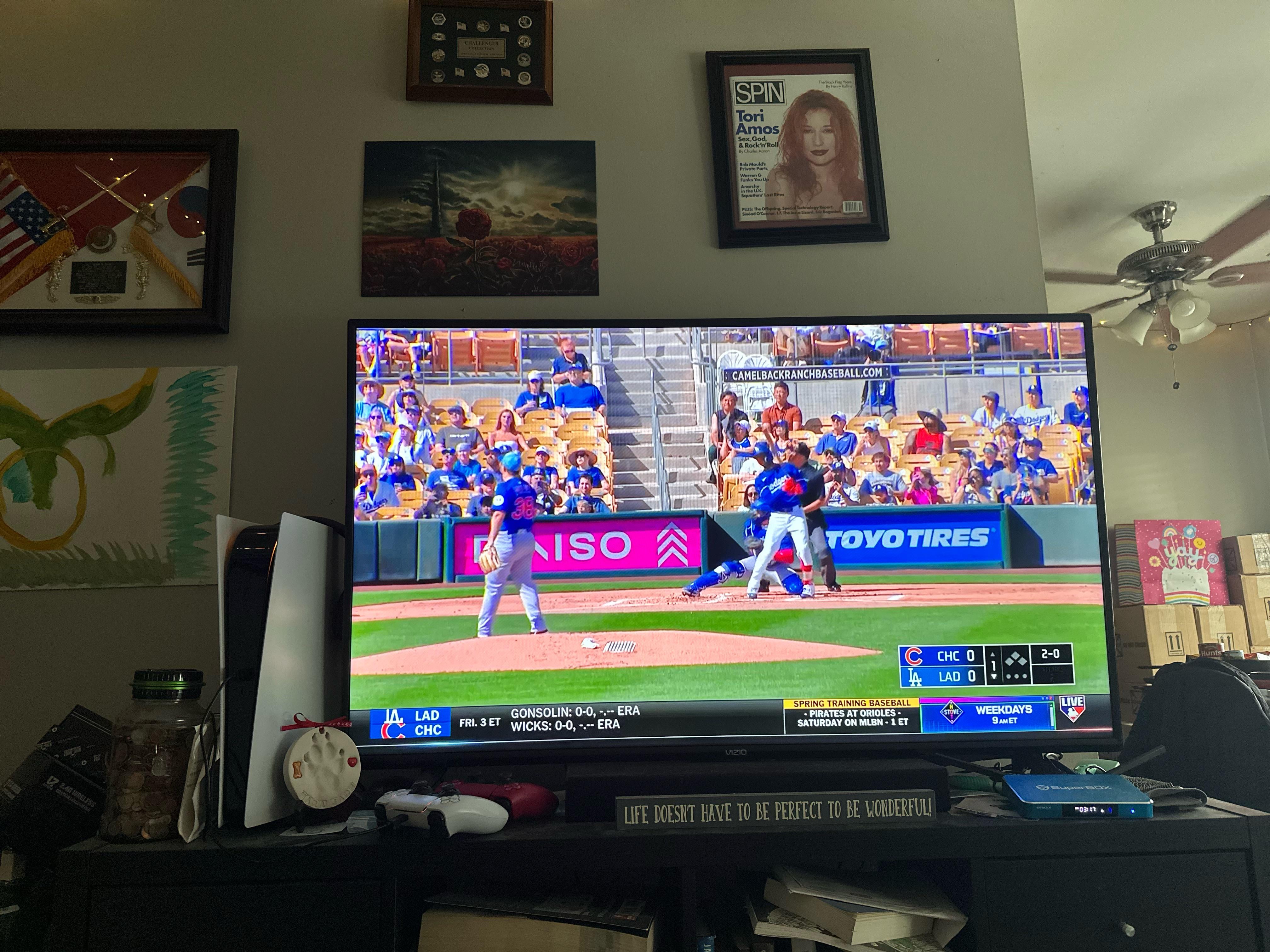 While it may not be the boys with the old English D, winter is over! 7 comments So much going on in this picture! Welcome back Baseball!! Sorry about your dog….gotta love Tori…. I just want to give you mad props for the framed Tori Amos magazine cover. She’s amazing. No, it’s not. And a 106 mph liner off Miller’s noggin’ to boot. The ball hitting his head was louder than when the bat hit it.  Since everyone is mentioning the decor, is that Dark Tower artwork? Makes me want to eat a whole box of cornflakes. Leave a ReplyYou must be logged in to post a comment.