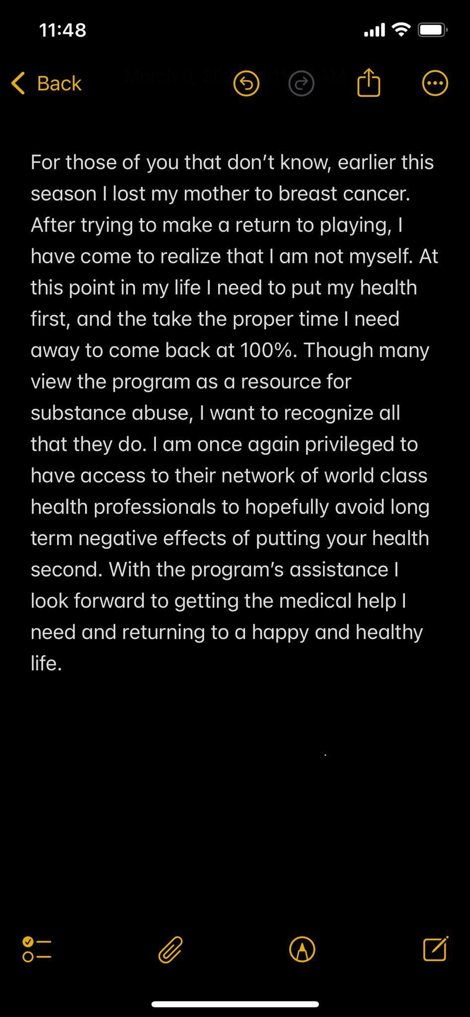 Gonna get kinda emotional here but it’s truly a great thing that these athletes that kids are looking up to are opening up about their own personal struggles and letting them know it’s ok to not be ok sometimes and to put mental health first. Wish nothing but the best for him.
