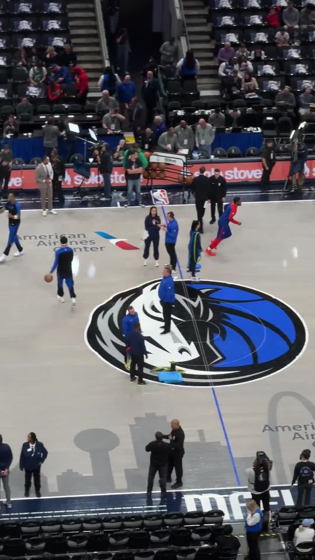 A historic 20 players combined are listed OUT between the Mavs vs 76ers today. A camera pans around, but only 6 and 7 players from each team are seen warming up.