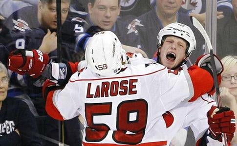 Against the Jets, the Hurricanes trailed 3-2 after two periods, but stormed back to win on Chad LaRose's goal off assists from captain Eric Staal and Jussi Jokinen with 1:22 left to play. Carolina had tied the game just minutes earlier when Staal scored his 21st goal of the season off a Jokinen assist.