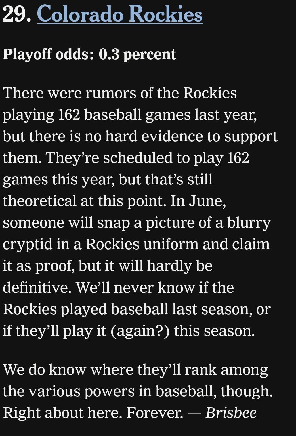 1. I think it’s the last line that gets me… “They’ll rank here, forever.” Not just bad this year, but no clear path to ever get better.