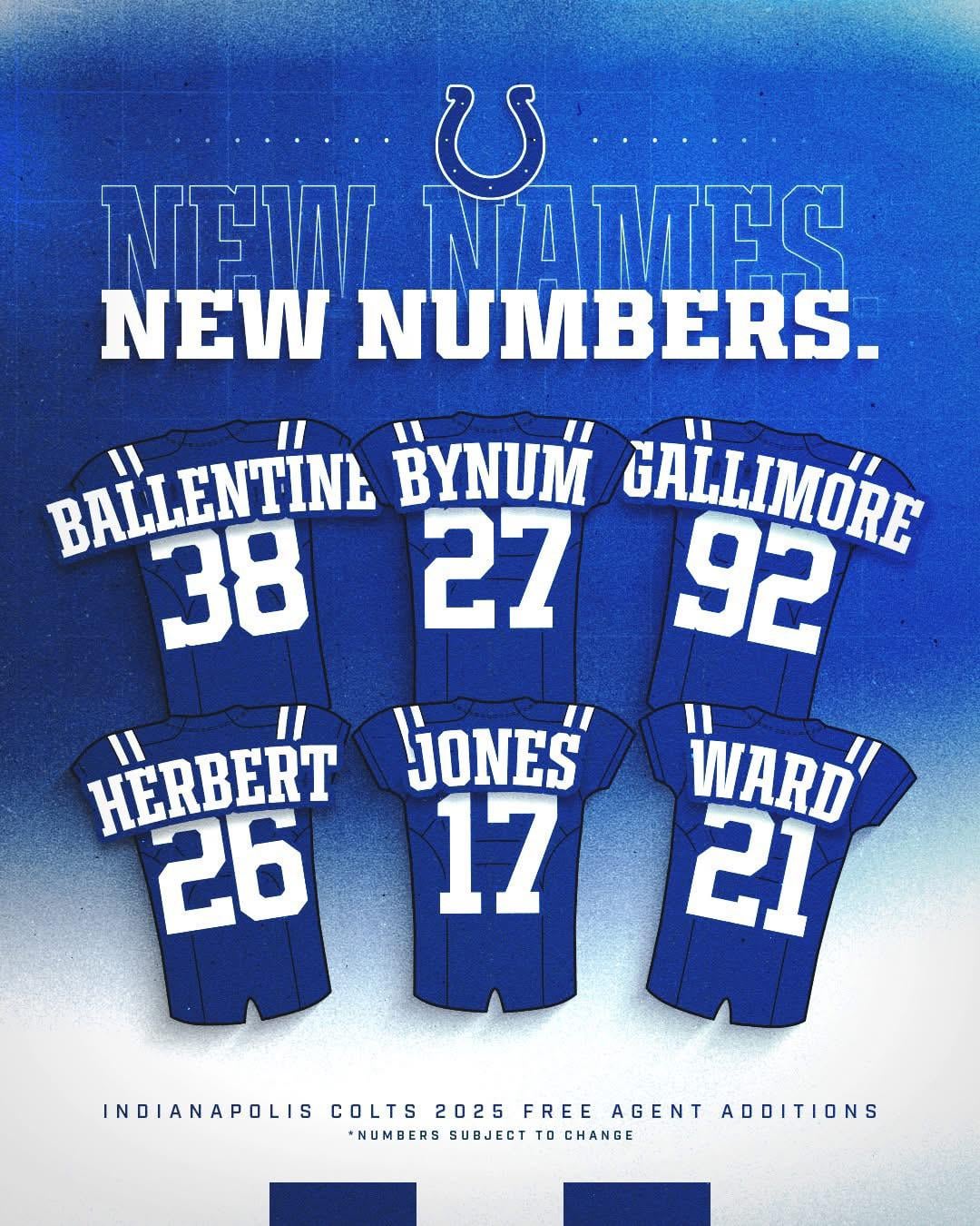 New Free Agents’ Jersey Numbers 10 comments How have we not retired #17 for uncle Phil  Ward with 21 I like it need him to be a shutdown corner, I’m sick of seeing Nico Collins give himself a pay day vs our secondary. 21 is going to look super clean on Ward. Daniel Jones in a clean blue/white uniform wearing #17? I cannot picture it! 21 has been a good number for DBs here. Vontae, Sanders, Ward. Shit so no Evan hull Time to free up #5. how dare gallimore don the sacred 92??? the disrespect to bjoern werner and jerry hughes is mindblowing 21 is always a great number on jerseys Leave a ReplyYou must be logged in to post a comment.