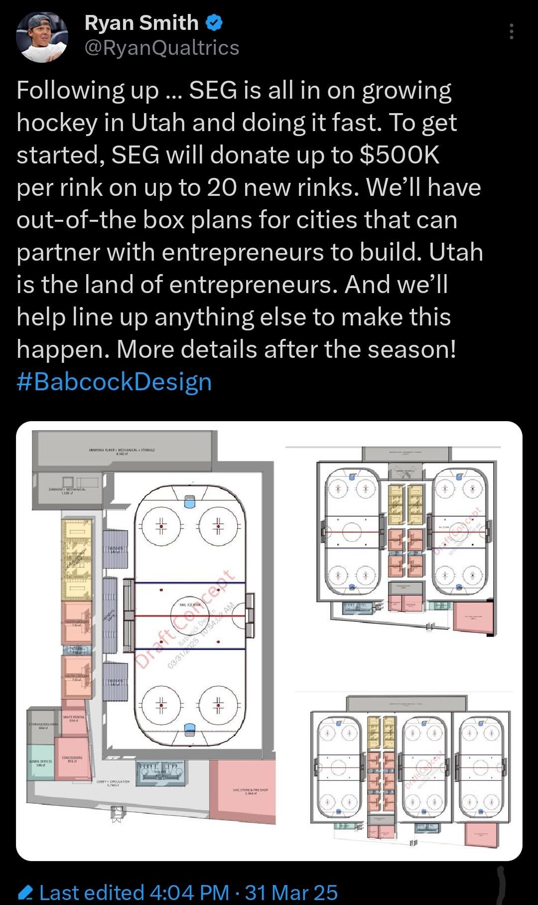 3. I want to like Smith, but $500k doesn’t even get you ice. It makes it sound like he has no clue how much it costs to build a facility or maintain one. The whole entrepreneur angle is really off. They want to make money, not lose hundreds of thousands every year running a rink. That’s why most rinks in Utah are run by a city or county.