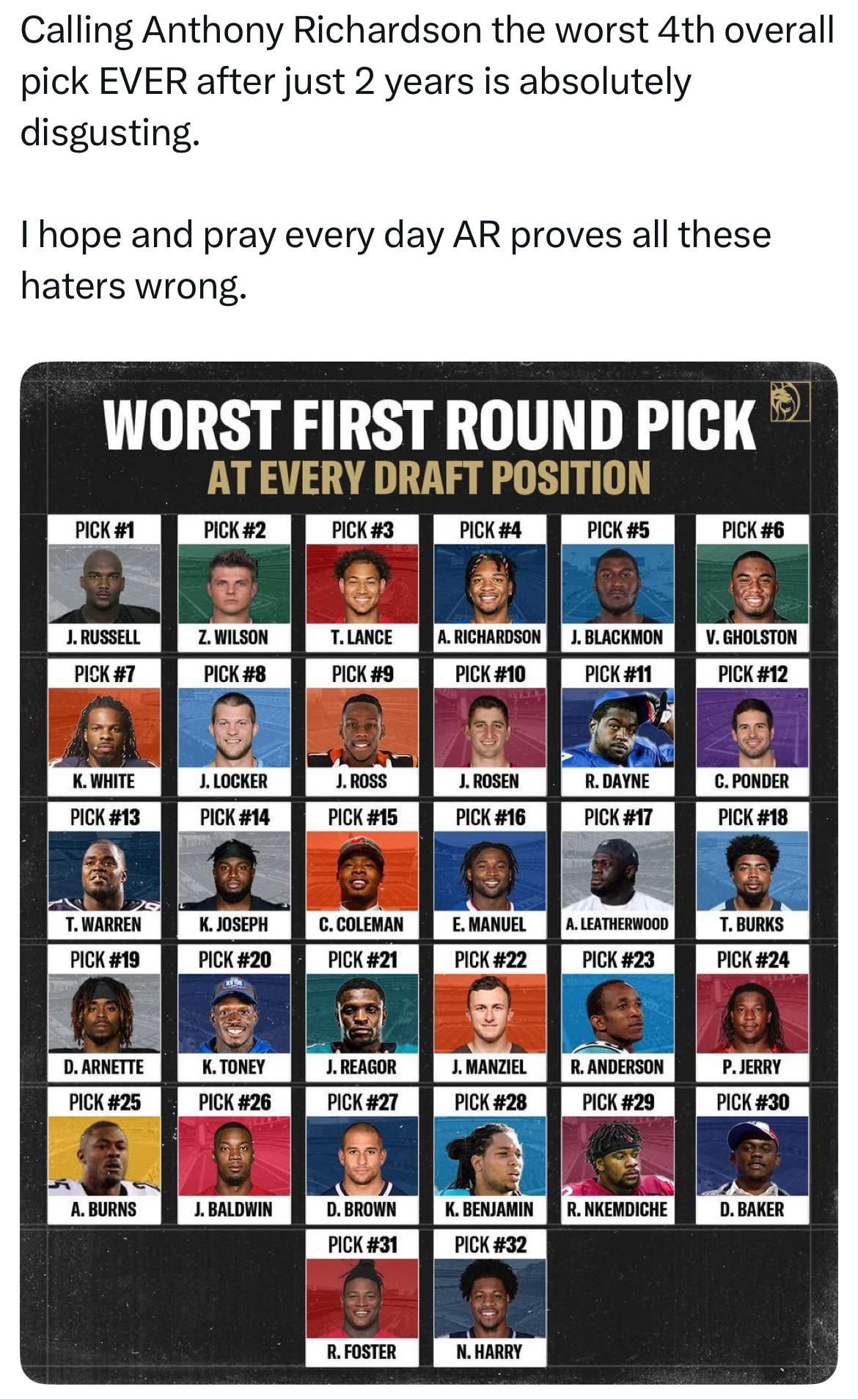 7. Feel like some people weren’t high on Richardson coming out, understandably. And can’t help but give themselves a pat on the back every chance they get at this point. Is AR a bust candidate, sure. But this list is a joke.