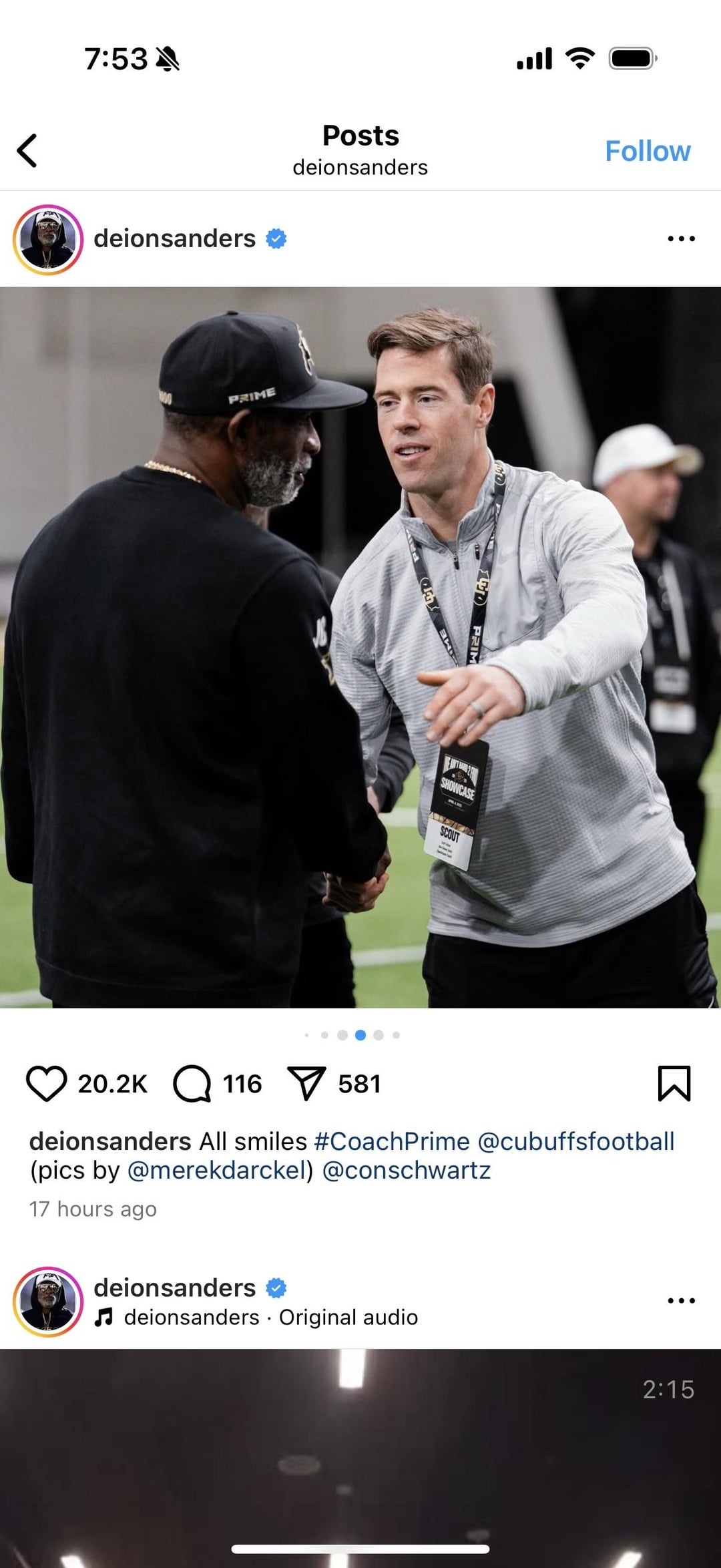 Deion Sanders with Saints Coaches at Colorado’s Pro Day… (QB Coach Scott Tolzien & WR Coach Keith Williams)