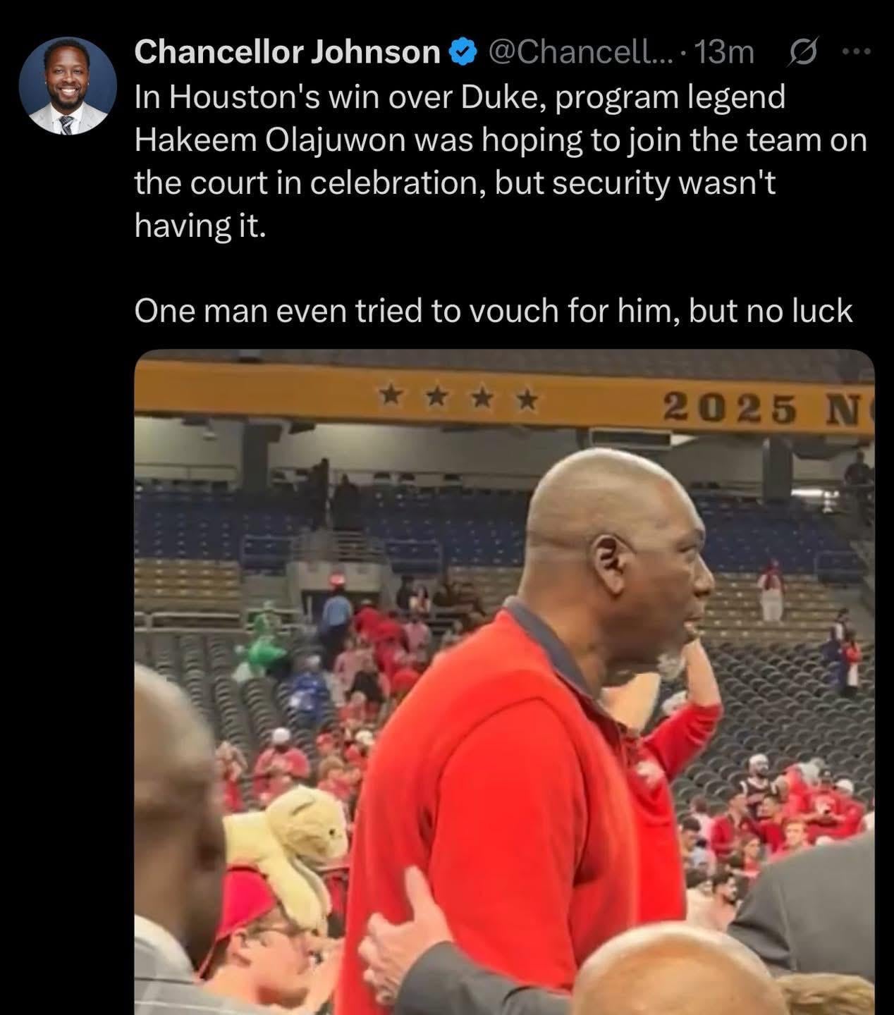 San Antonio π 14 comments They know exactly who it is, they are just still mad about [this](https://youtu.be/hW4uXlRGAF0?si=tTqDIgAo0K9sUREW). Technically he owns the Spurs, so this is curious indeed Blasphemy The only way San Antonio could stop him Really odd since he literally owns the Alamodome after the 95 WCF  If they win on Monday and this travesty is repeated, this should require legal action against whoever planned this. Mf think because heβs arguably the best center ever, he can just walk on the floor when his Alma mater wins a big game. It’s fucking San Antonio that’s why Why would anyone live there. In securityβs defense they probably thought he was just some random 7-ft 260-lb man, cuz like everyone looks like that Huge L Lame asf ! >When questioned about his exclusion authorities responded with the blanket statement, “Sorry, sir, Admiral’s orders” Leave a ReplyYou must be logged in to post a comment.