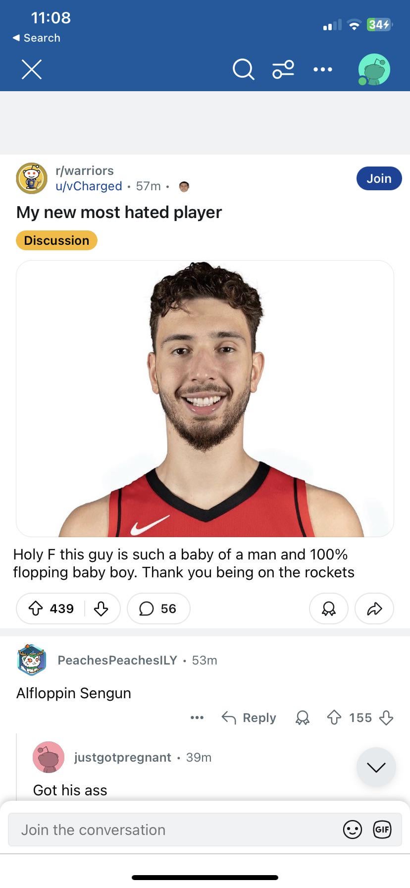 I just can’t understand the delusion this fanbase has lmfao. I am not saying Sengun never flopped, every NBA player does but watching the entirety of this game and labeling Sengun as flopper is beyond idiotic. My brother, he literally got elbowed to his face and bled a lot, Draymond Green arguably the dirtiest player in the league gave another elbow to his neck just to antagonize the ref. I am so glad that I won’t ever have to delude myself into supporting the actions of bum ass Draymond Green. Also, fuck Warriors.