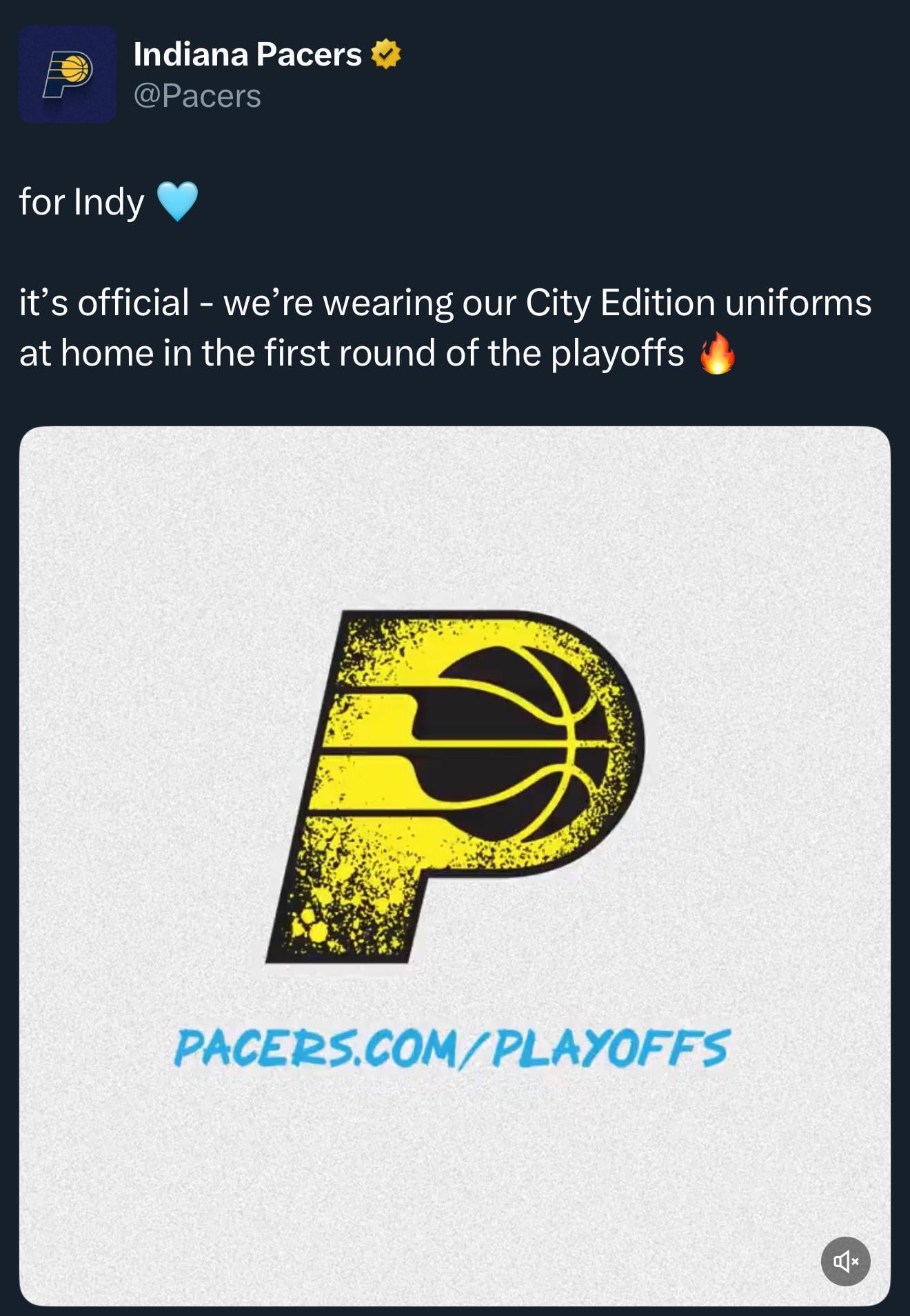 Pacers will be wearing their city uniforms throughout round 1 of the playoffs