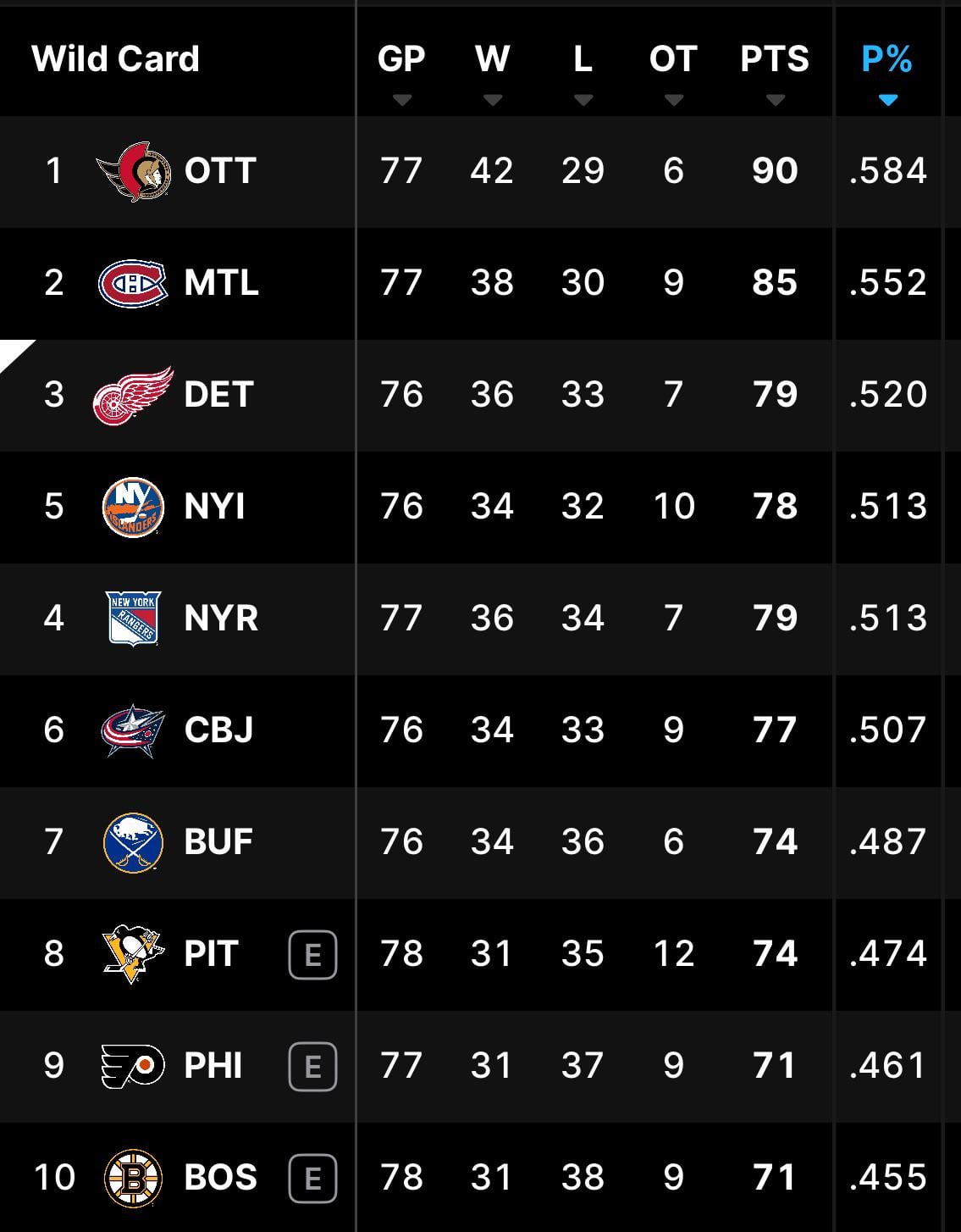 Not really lol it helped the Habs to solidify their spot more than anything because Rangers have all the tiebreakers, they’re the threat to them because it’s guaranteed Rangers would win in a tie.