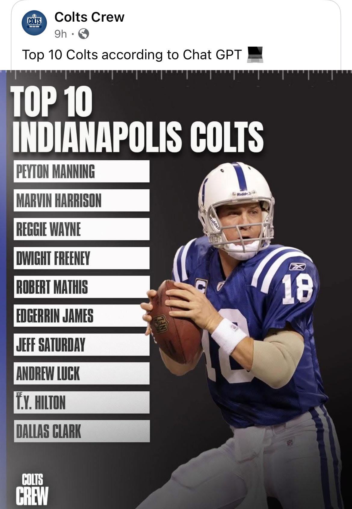 It’s a good list but “top” is highly subjective. Iconic? (Luck too low) Best players? (Edge too low) Best peaks? (Where is Bob Sanders?)