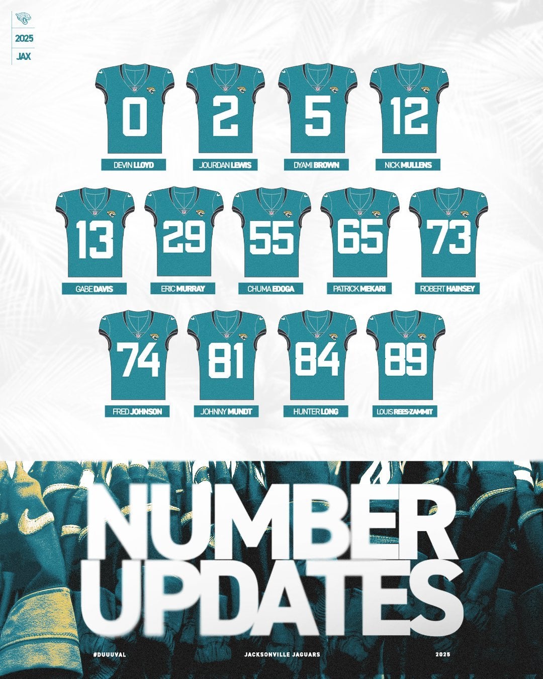 [Mia] Jaguars announce a slew of jersey number assignments and changes.