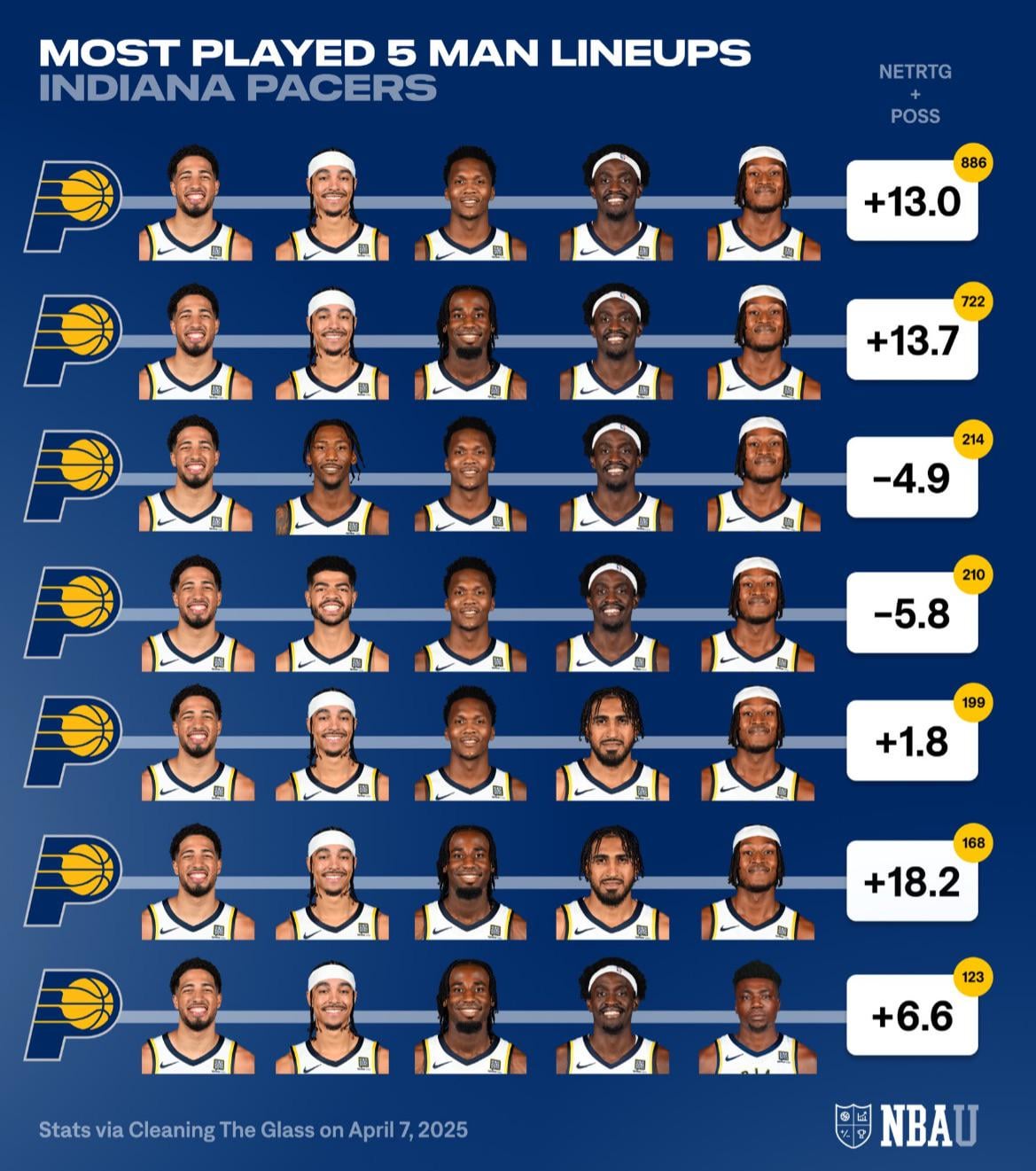 The first lineup being a +13, then the fourth one being a -5.8 by just taking out Nembhard for Sheppard is wild lol