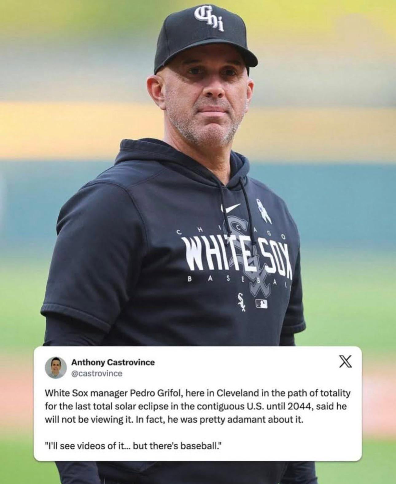 Reminder that one year ago today, during the last full solar eclipse in the Midwest of our lifetime, Pedro Grifol was more concerned about staying in the office to plan on losing a baseball game.