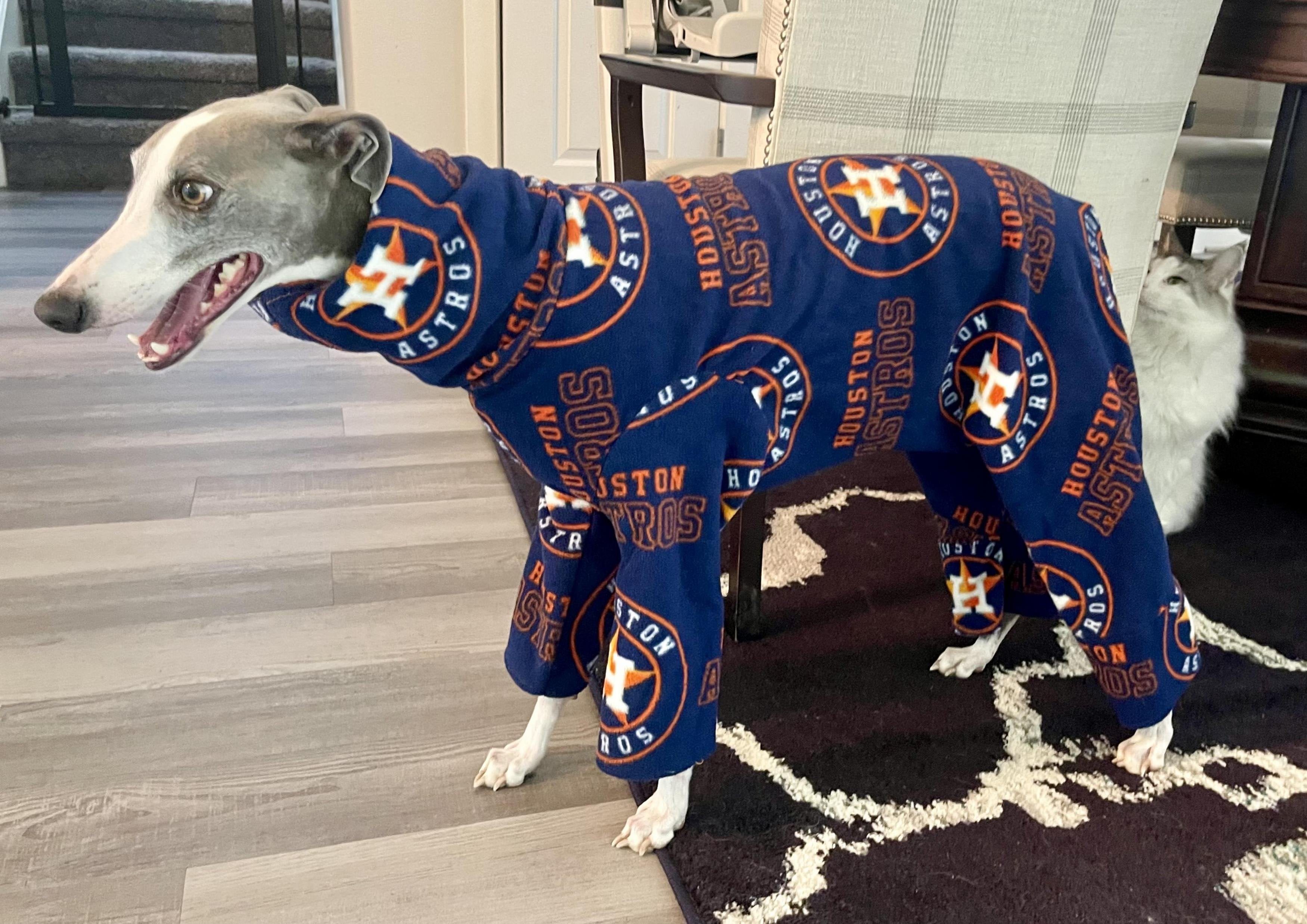 My whippet got hurt yesterday so to protect his surgical site, he gets to spend the next two weeks rooting for the Astros. Maybe he can bring them some luck.