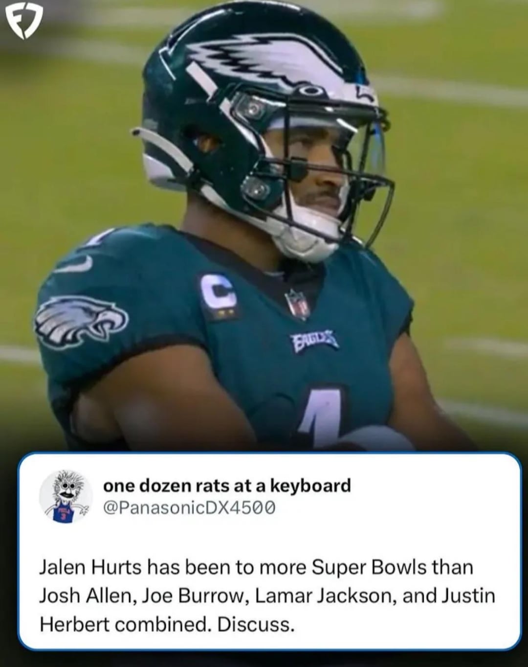 5. I mean Jalen Hurts doesn’t have a final boss in the nfc named Patrick Mahomes. He’s in fact becoming the nfc’s final boss.