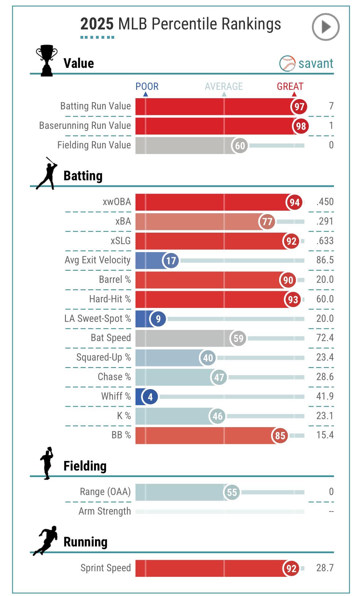 Whiff rate is concerning. Not worried about the avg exit velo because his ev50 is above average (And Tom Tango would argue that it tells you more about a hitter than avg exit velocity).