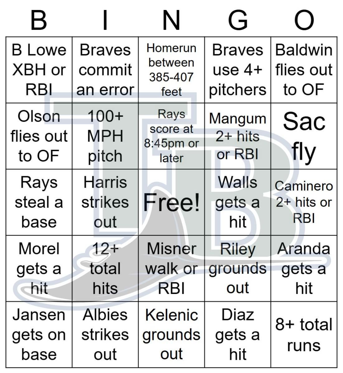 Rays vs Braves Bingo, 4/11/2025 1 comment Dammit, I was going to ask “where’s Bradley gives up a first inning run?” Leave a ReplyYou must be logged in to post a comment.