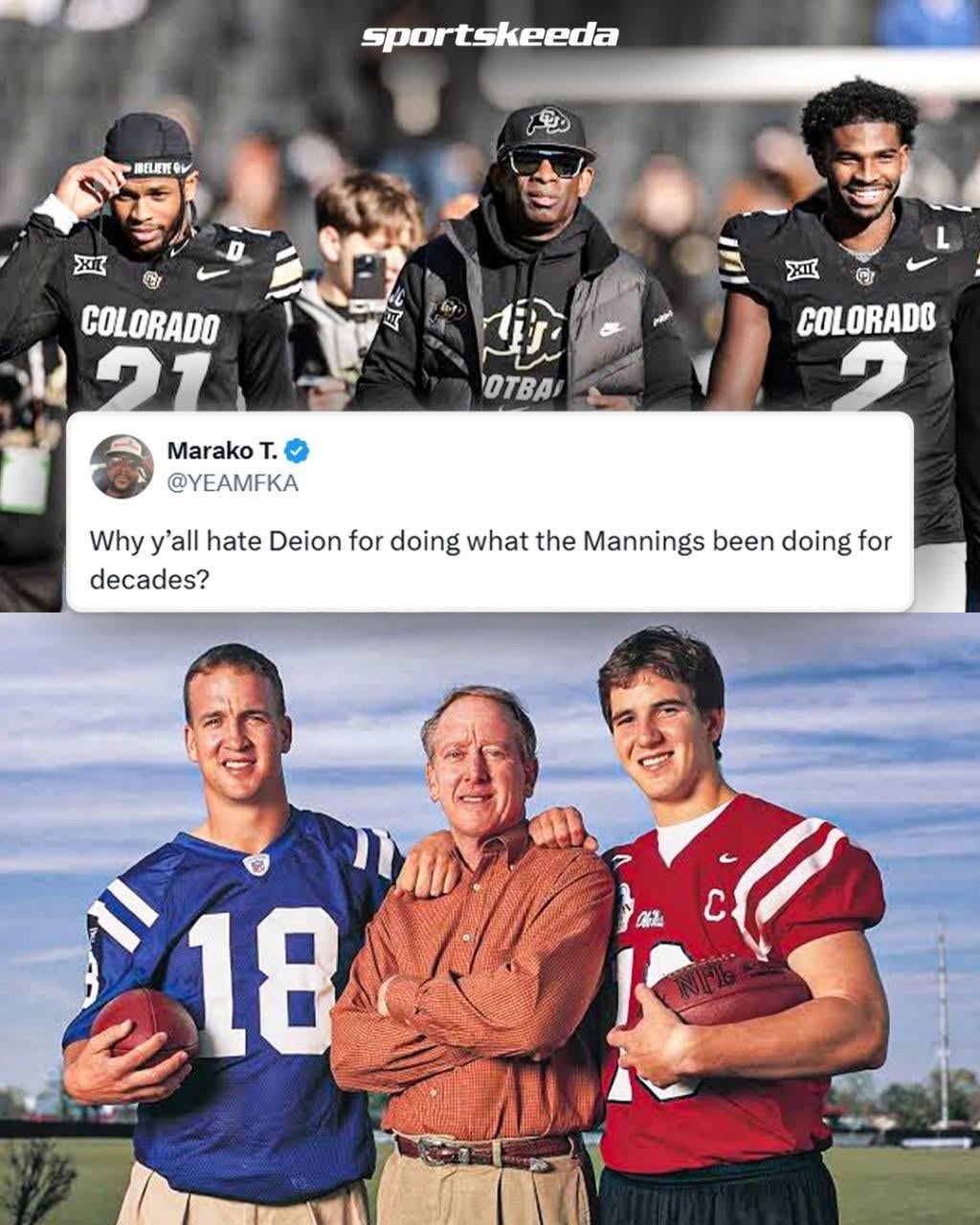 Last time I checked the Mannings weren’t cocky arrogant assholes. They were good and they knew it and they showed it on the field. I loved Deion when he played but he was cocky as hell back then and is worse now. It reminds me of a kid my brother played hockey with… the kid was decent but was never going to go anywhere in the sport. His parents on the other hand had different thoughts on the matter… they bought out a Junior Hockey team so their son could possibly make it big. While Deion didn’t buy out a team it sure feels the same way as that.