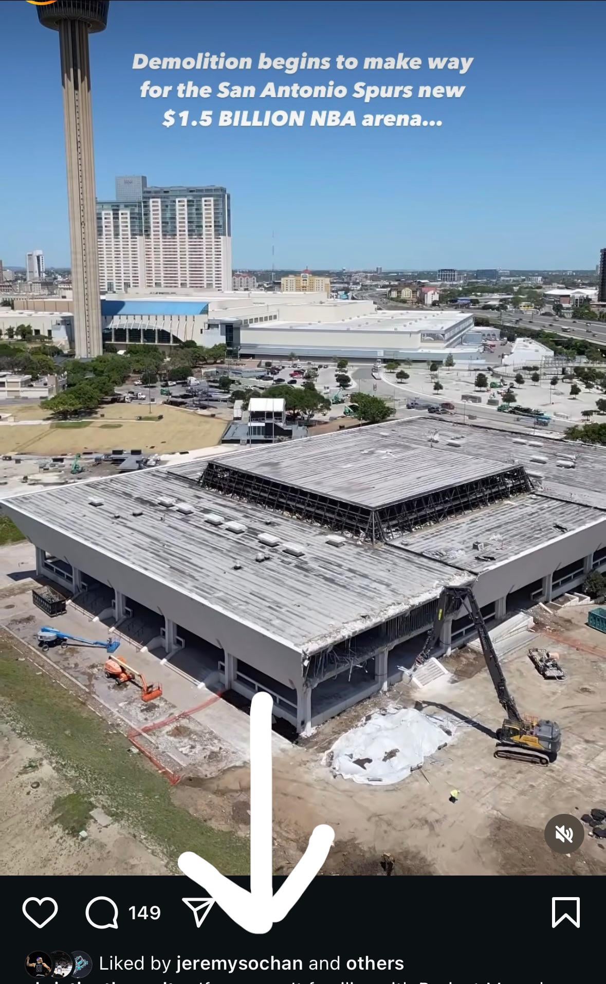 Unsurprisingly, Jeremy Sochan (known to live in King William mere minutes walk from where the new arena will be in Hemisfair) seems to be a fan of the demolition happening at the Institute of Texan Cultures, the space that everyone knows the city will lease to the spurs for their new arena.