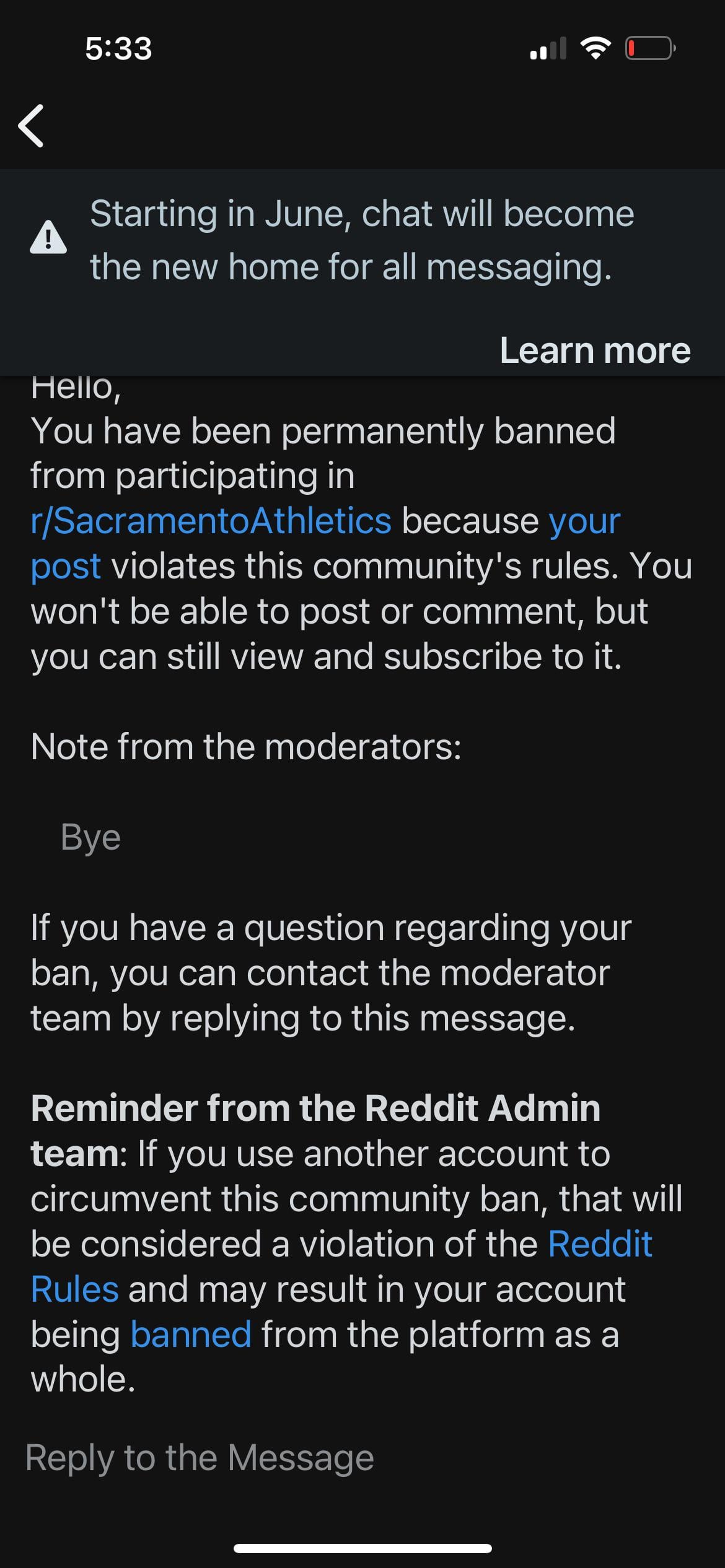 I’ve pushed it on some of my comments over there but haven’t been banned yet. I’m forever an Oakland A’s fan. Not Sacramento, Vegas, KC or Philly.
