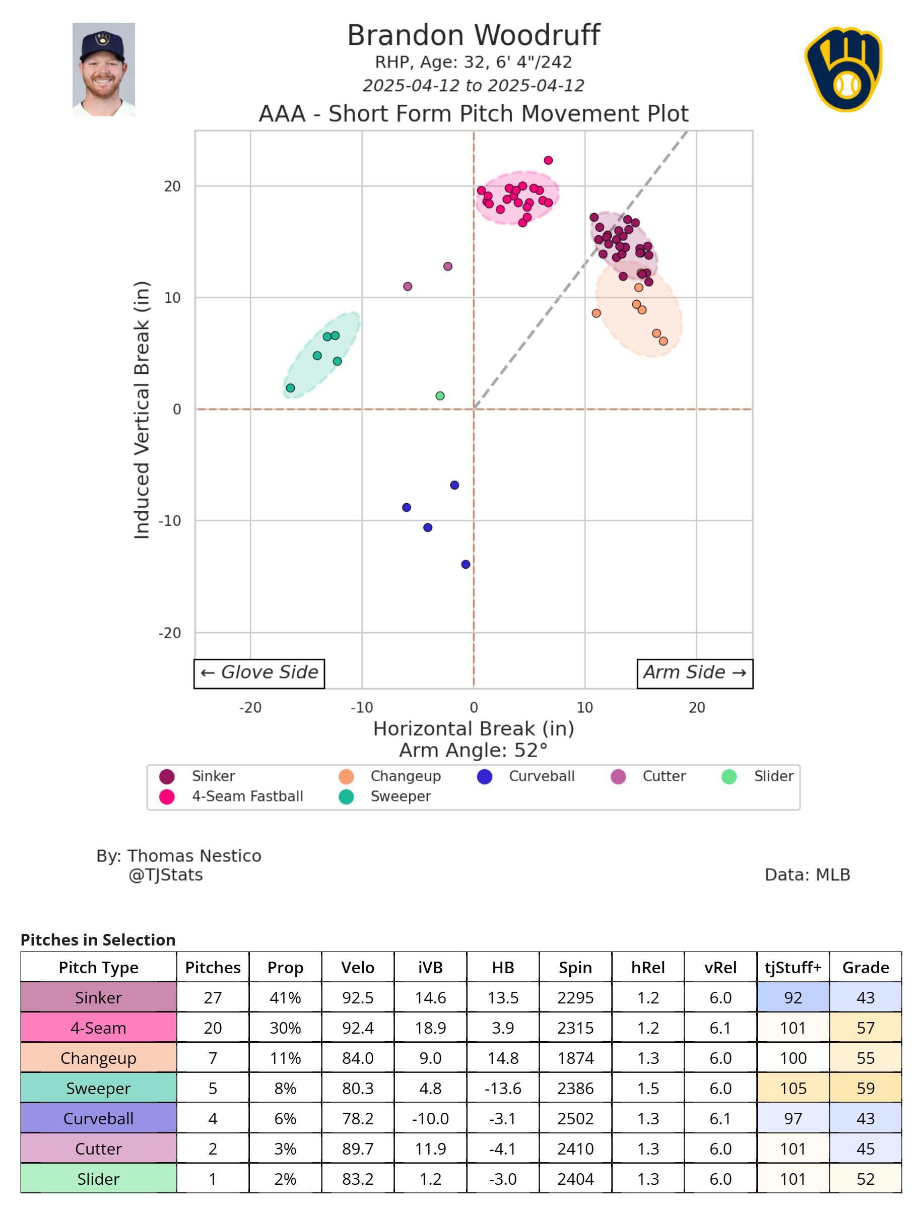 The four-seamer was close to its usual movement and wasn't cutting too much. The cutter and sweeping slider he's been toying with complement the rest of the arsenal nicely.