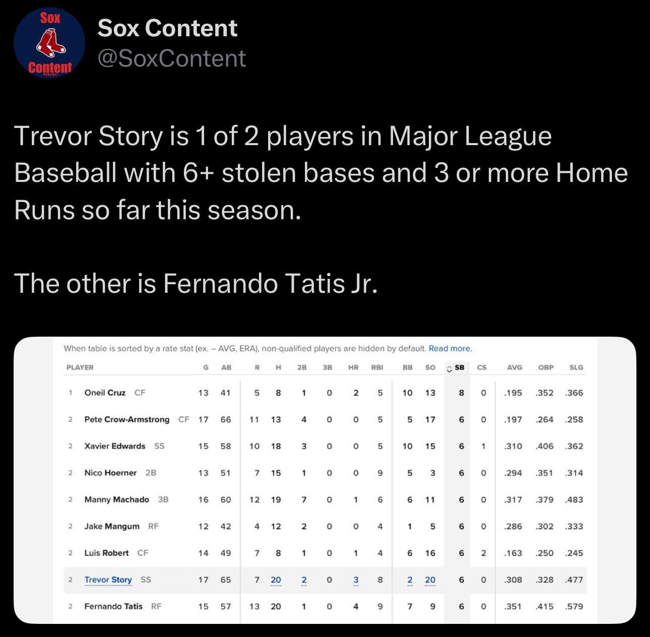 A healthy Trevor Story is a game-changer for this team. 18 comments cant lie hes been great Watching him get hurt on the clubhouse right now and it’s devastating. Please keep this man healthy 😩 But I thought he was bad and was only a roadblock being on the team? After watching the rotating door at SS the past few years, there’s just something so comforting about watching a hard ground ball to SS this season. Please just stay healthy for once, this feels long overdue Do you guys think this is sustainable? The metrics really worry me. Honestly his offense feels like a bonus. Having him healthy at SS is most important. That’s what I’ve been saying all along. Last year was a freak injury from his literally giving his considerable all. Guy was playing great up until then. Hopefully this will be the year he doesn’t get injured 20 Ks in 65 ABs is giving me a fucking headache Needs to turn some of those Ks into BBs and get that OBP up and he’ll be cooking. So happy that he’s healthy this year, always been a big Story fan. I’d do anything for Trevor Story People forget or don’t know that Trevor Story was one of the best SS in the game before the injuries/joining the sox What are the chances of him actually staying healthy? This has been the case since he joined and I’d be stoked to see him avoid injuries. A game changer? The Sox are a .500 team with a healthy Story. Last year, they were a ,500 team with an unhealthy Story. What’s changed? The Sox have many holes. A healthy Story fills one of the holes but many remain. They are so much less terrified when he’s on the field. both are injury prone as well Leave a ReplyYou must be logged in to post a comment.
