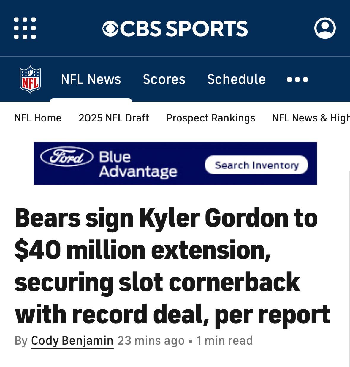 https://www.cbssports.com/nfl/news/bears-sign-kyler-gordon-to-40-million-extension-securing-slot-cornerback-with-record-deal-per-report/# 5 comments Great extension at that price https://i.redd.it/1fjocdiw0tue1.gif  Excellent we can put to the rest the posts of when will Kyle get extended I can’t wait to see him in Allen’s defense. I see a pro bowl in the near future. Leave a ReplyYou must be logged in to post a comment.