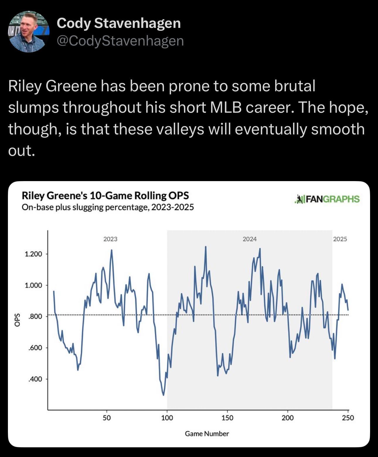 “Is Riley Greene washed have pitchers figured him out?” 😂