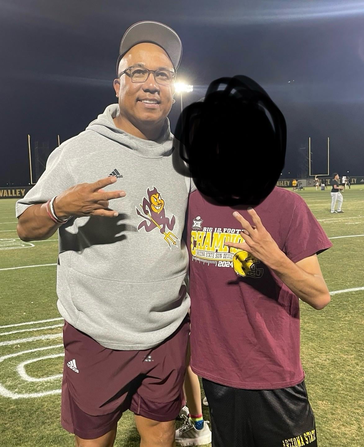 ASU! I’m listening to a book about Pat Tillman right now who played college football for them in 1996. Jake Plummer was the QB. And when he signed with the Arizona Cardinals, Jake Plummer went there too and they were best buds… Anyway! Cool! Lol