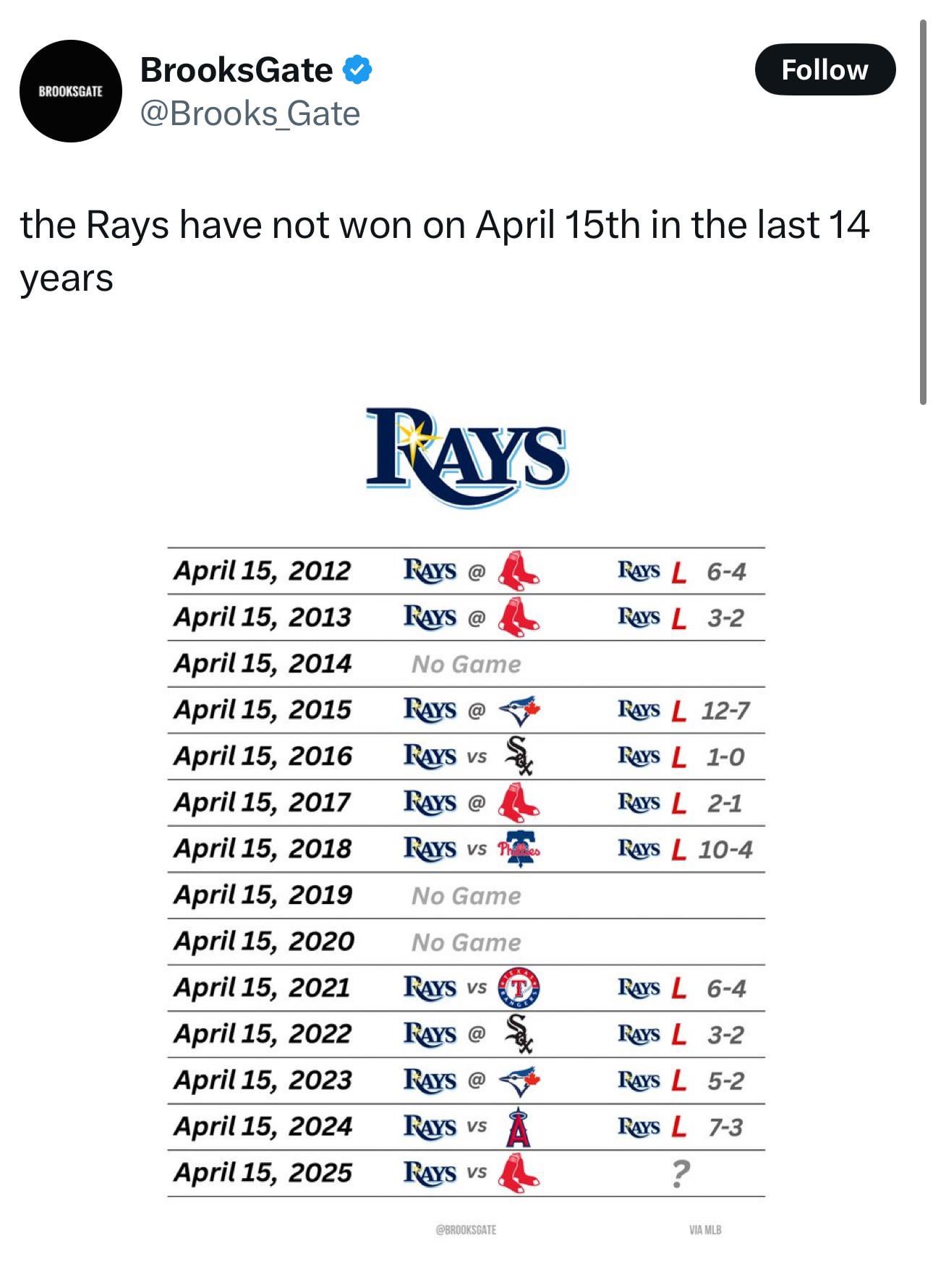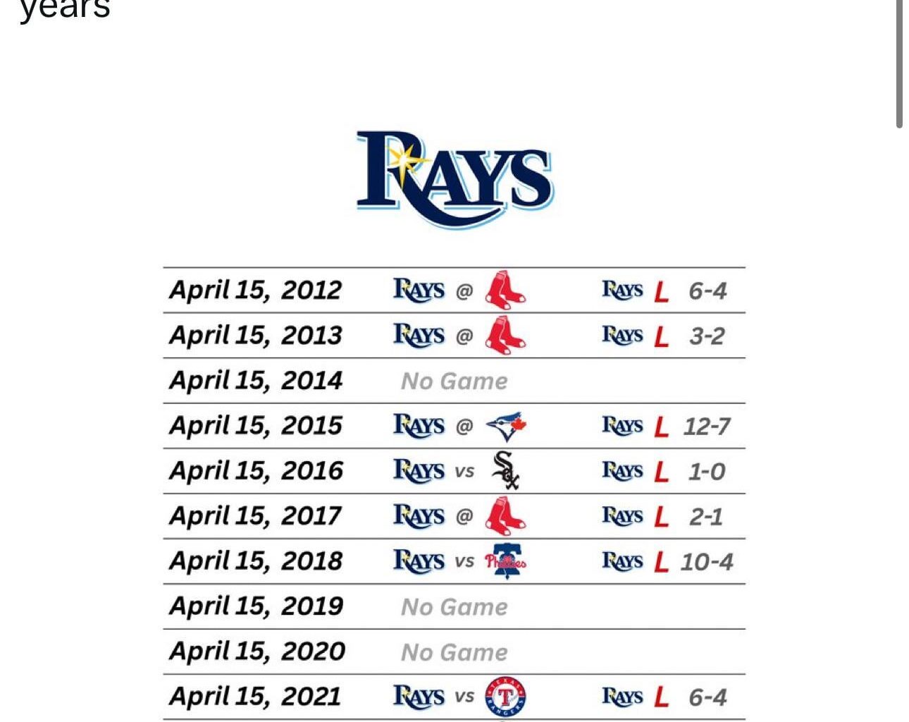 “No one beats the Rays 15 times in a row on April 15th. ”